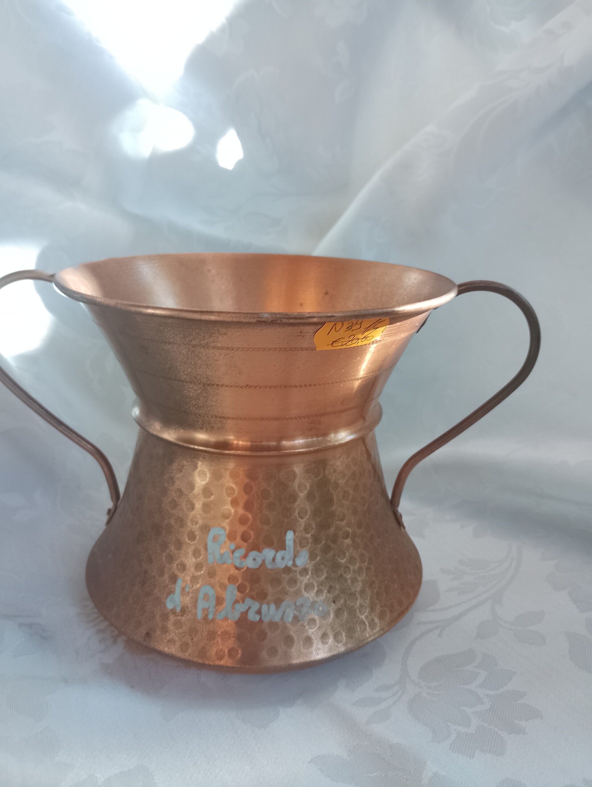 Vaso lavorato in rame misure altezza 15 cm larghezza 22 cm.