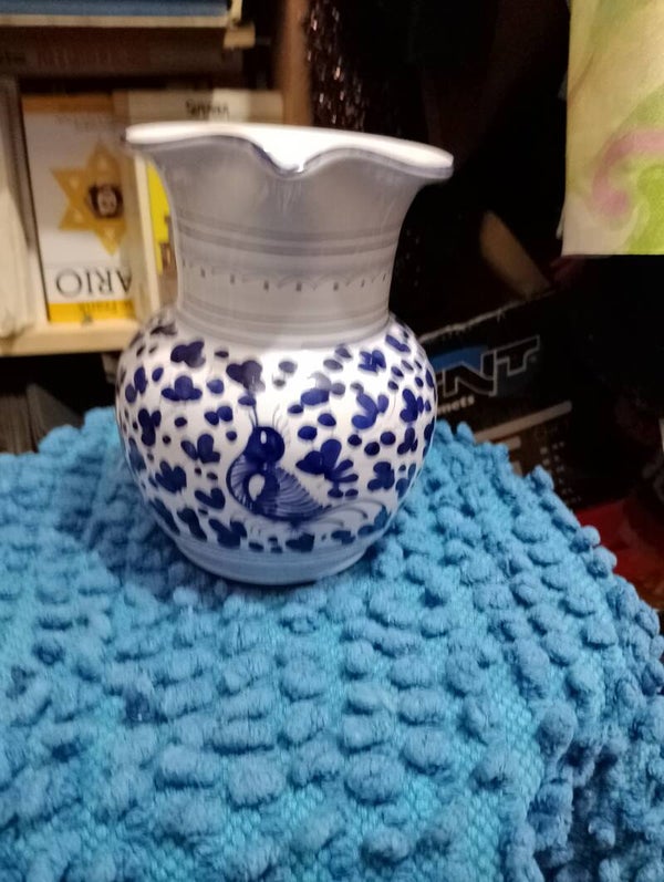 Brocca di ceramica colori bianca e blu , lavorato a mano .