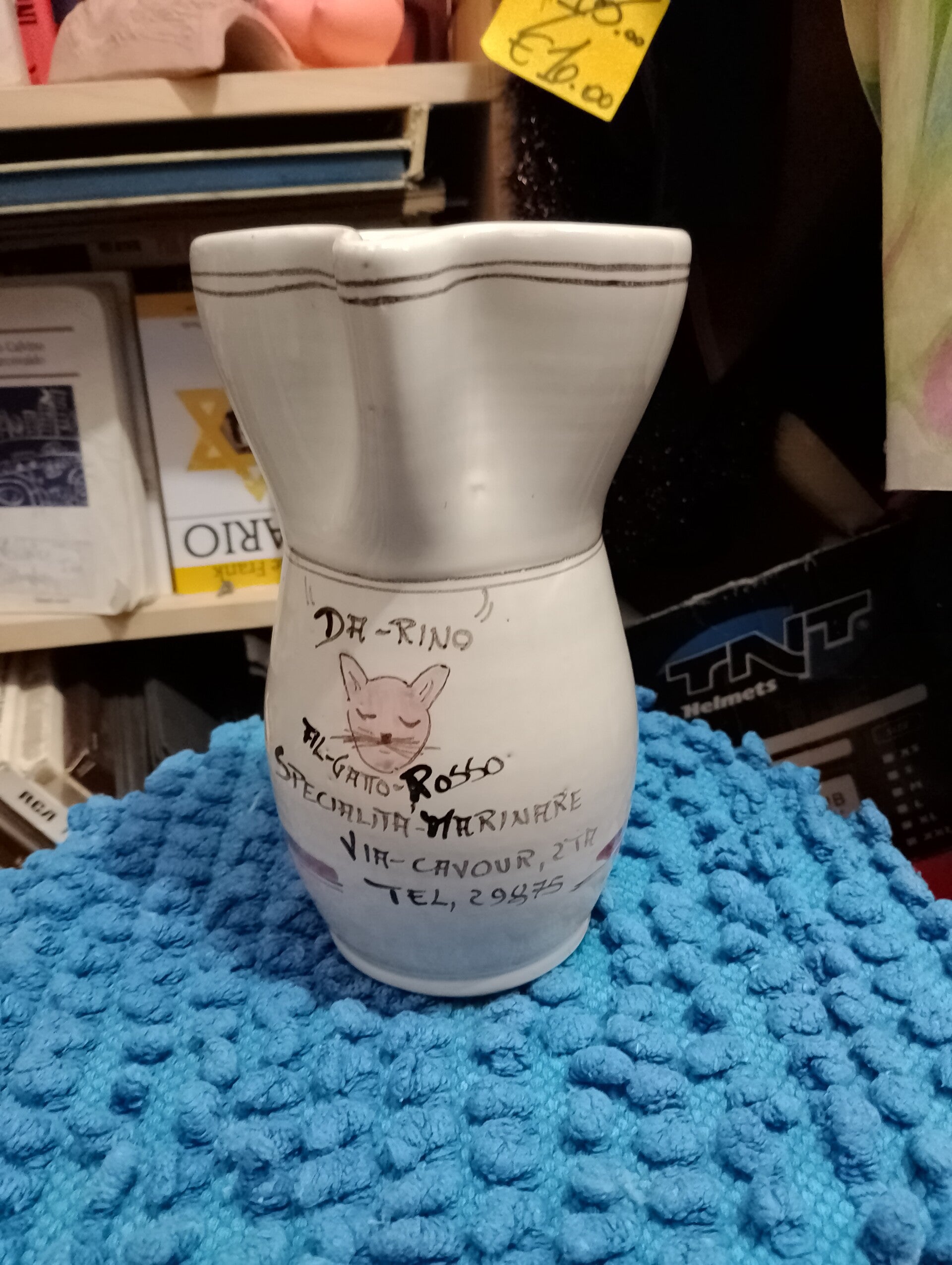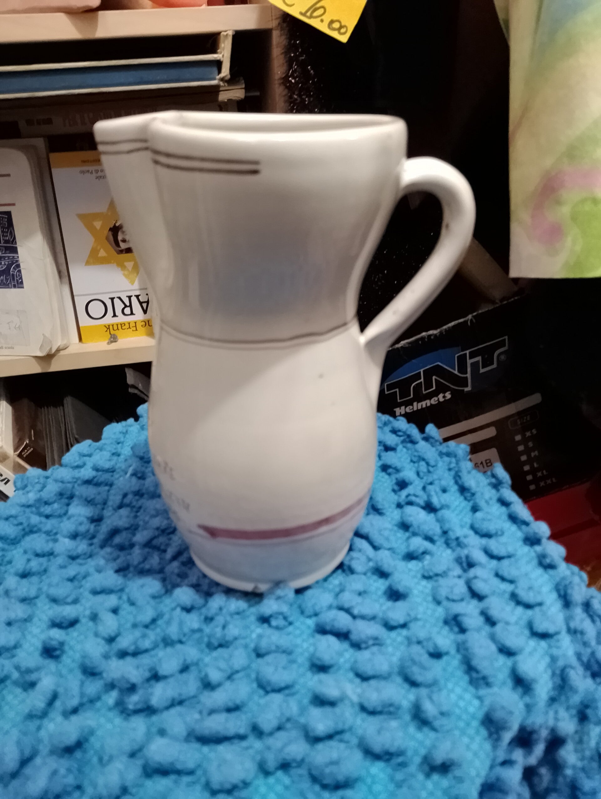 Brocca bianca lavorata a mano di ceramica. Altezza 8 cm e larghezza di 5 cm .
