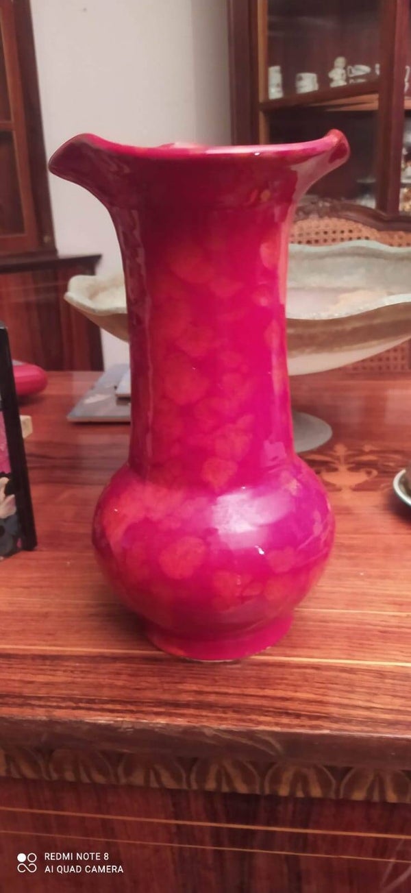 Vaso rosso vintage 30 cm altezza e diametro di 15 cm.