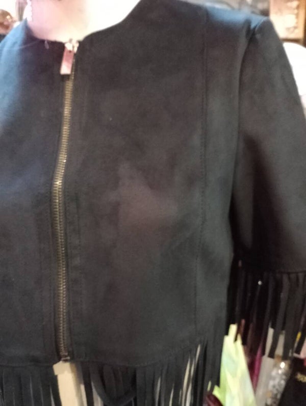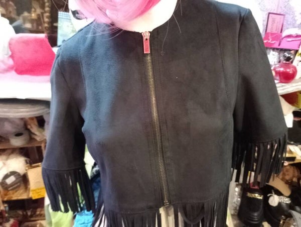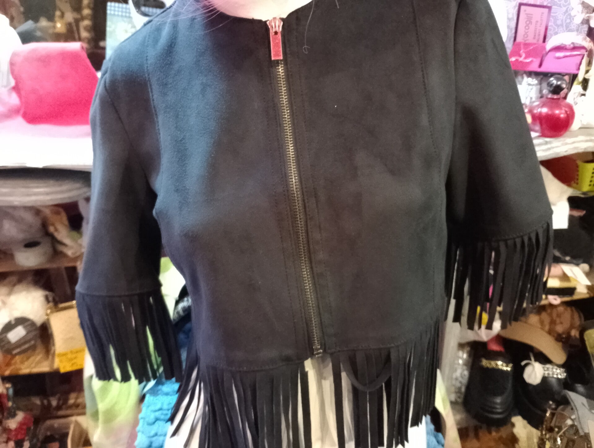 Giacchetta tipo nappa con frange sulla fina della giacca e nelle maniche.