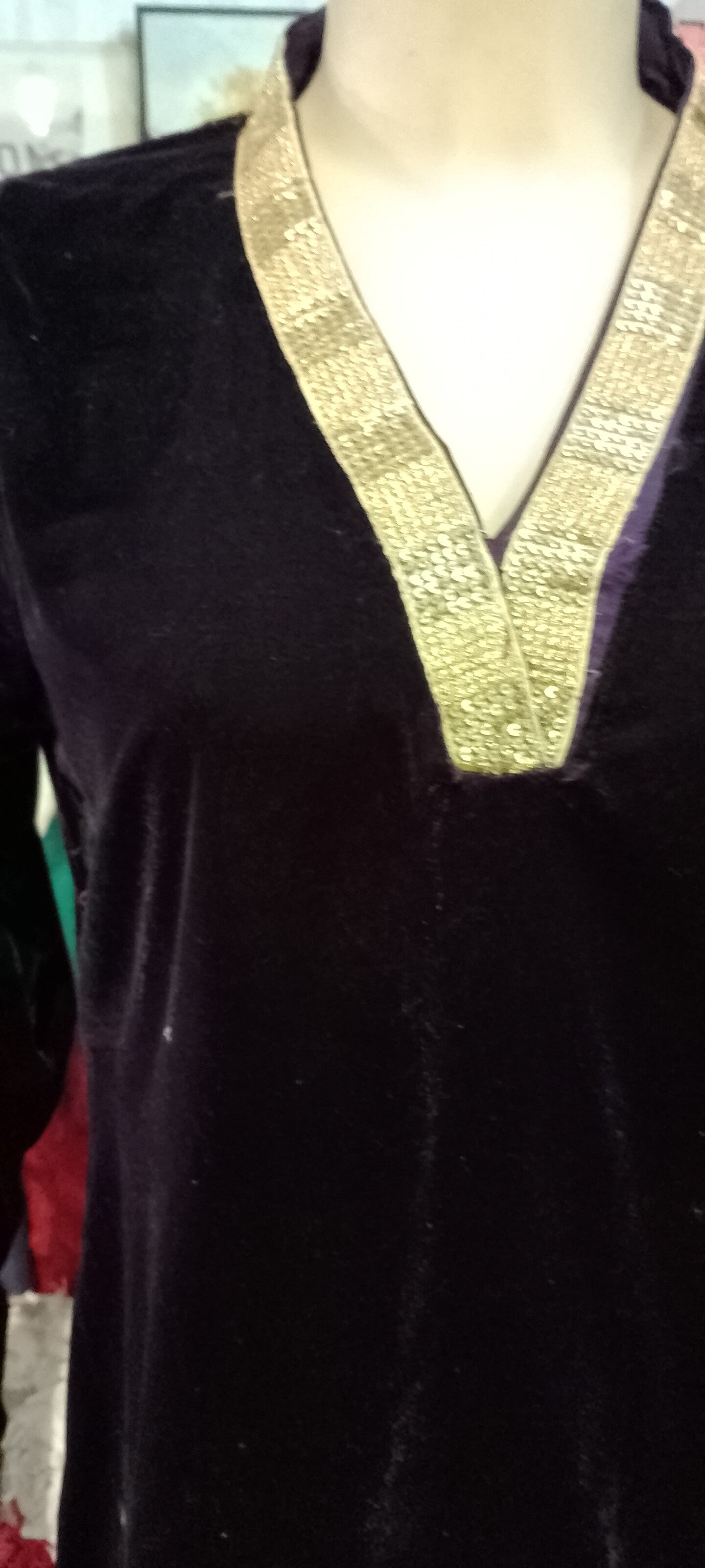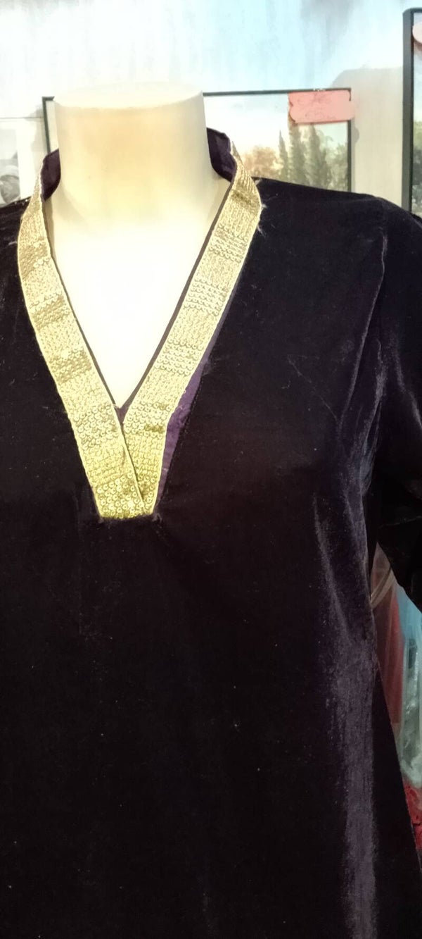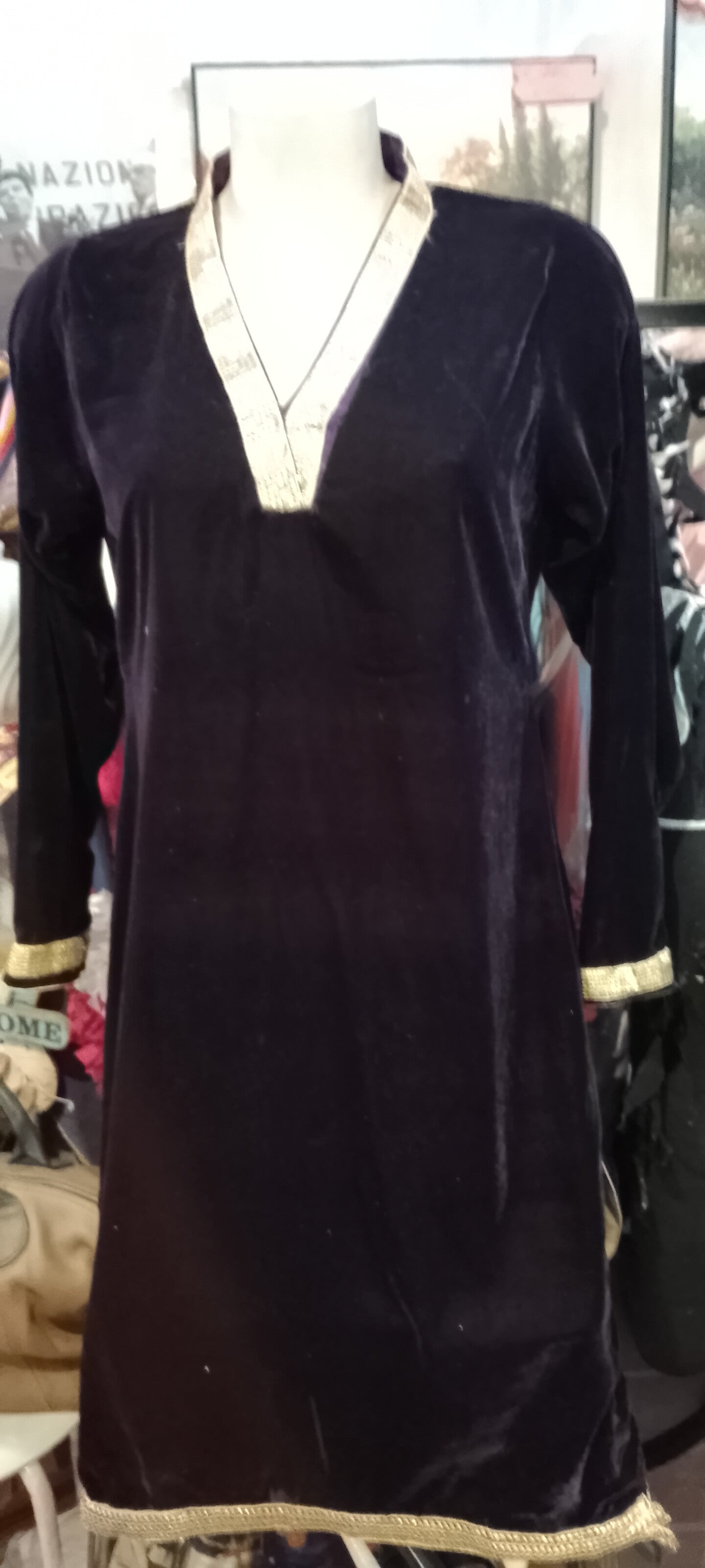 Abito stile arabesco in velluto colore prugna bordure dorate taglia S/M.