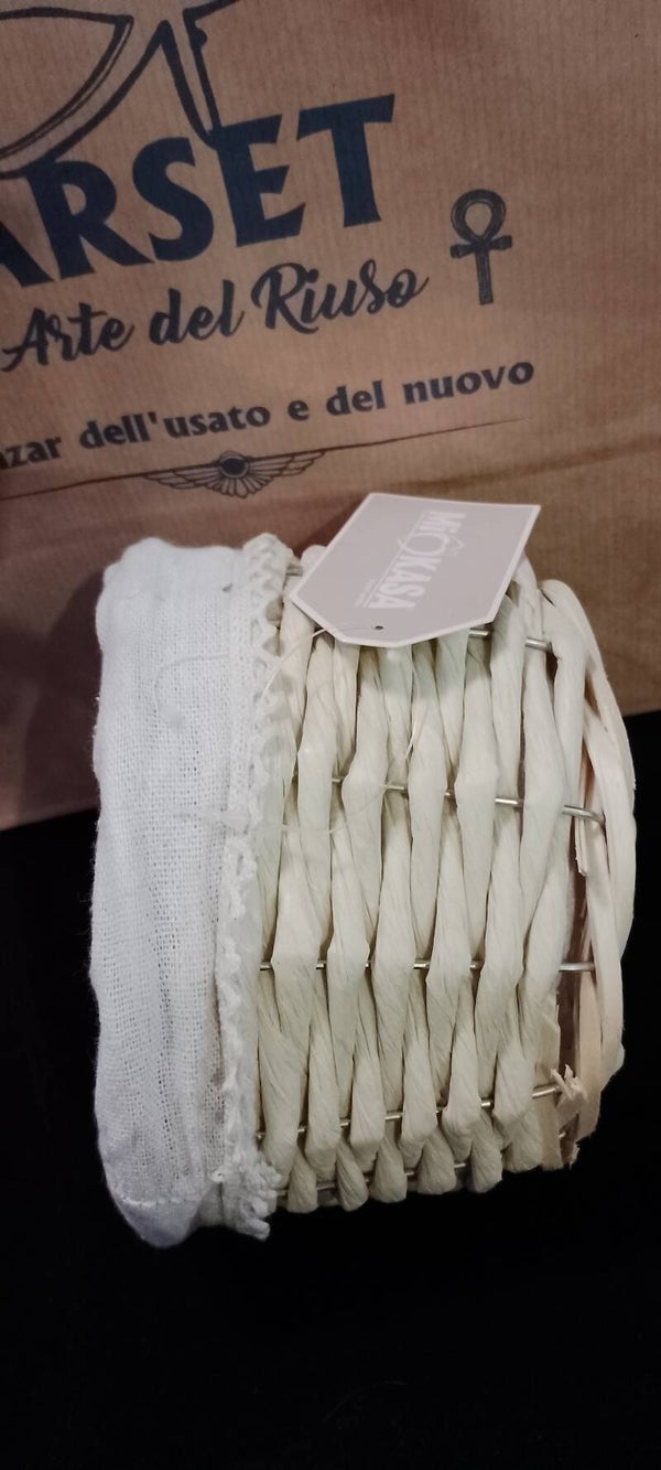 Cestino in vimini e stoffa base in alluminio.
