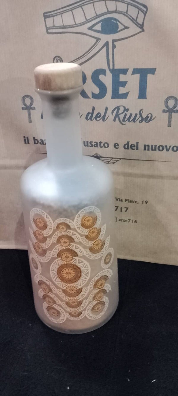 Bottiglia in vetro decorativa con sabbia colorata. Altezza 25 cm