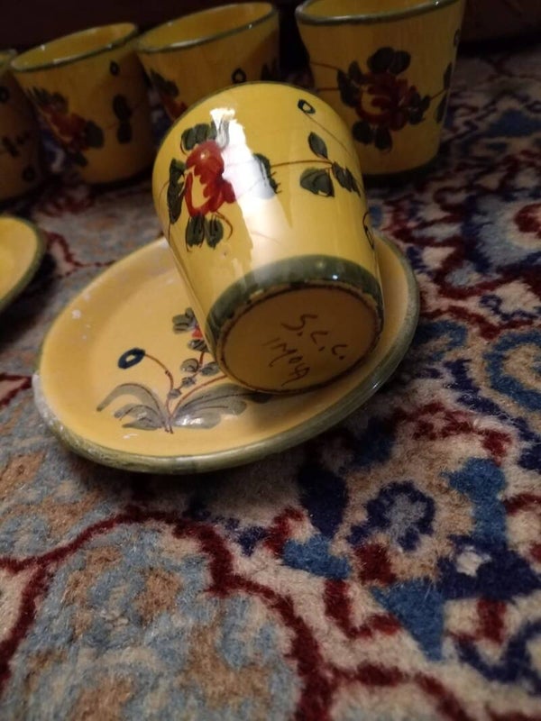 Tazzine di ceramica composto da n 6 tazzine e n 2 piattini pitturati a mano.
