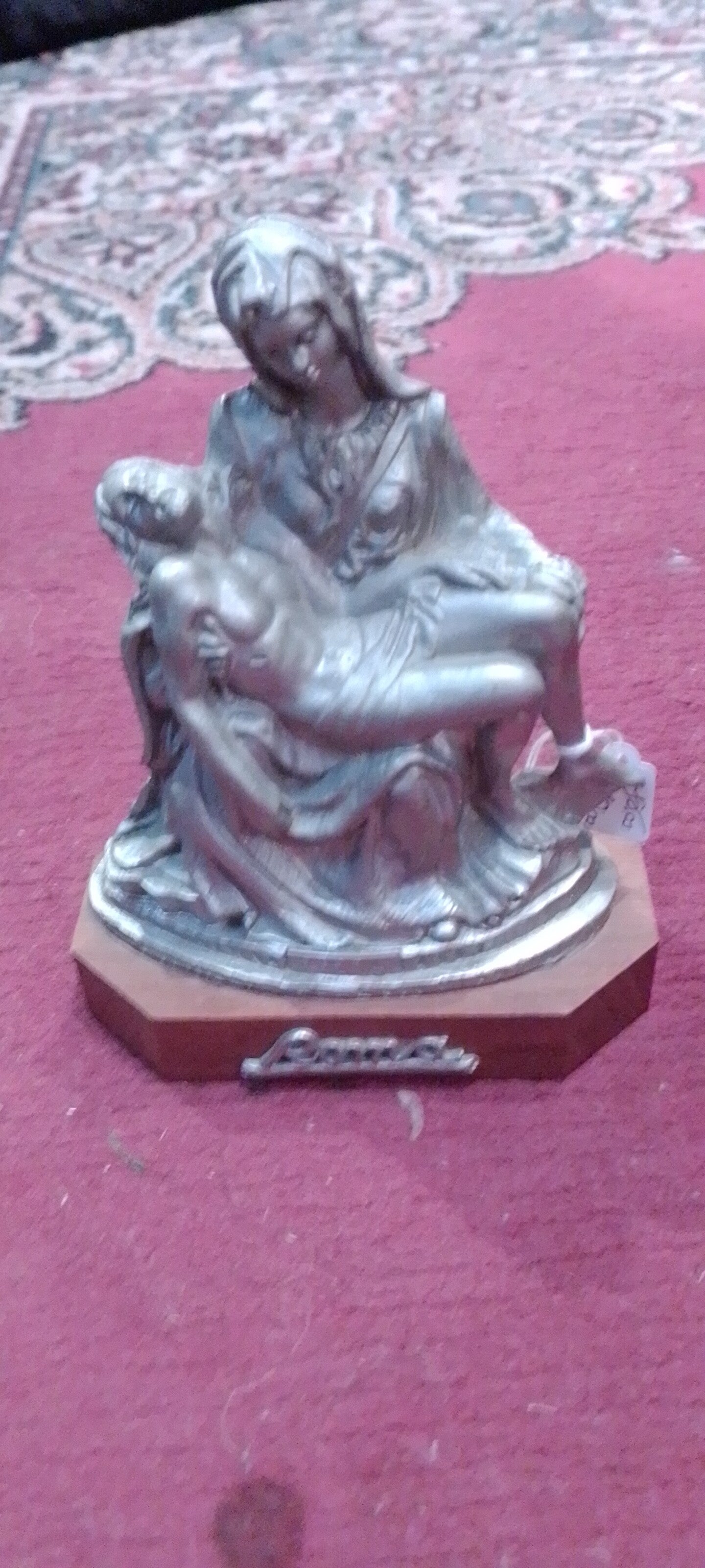 Statua in bronzo su base legno La pietà misure altezza 16 larghezza 12