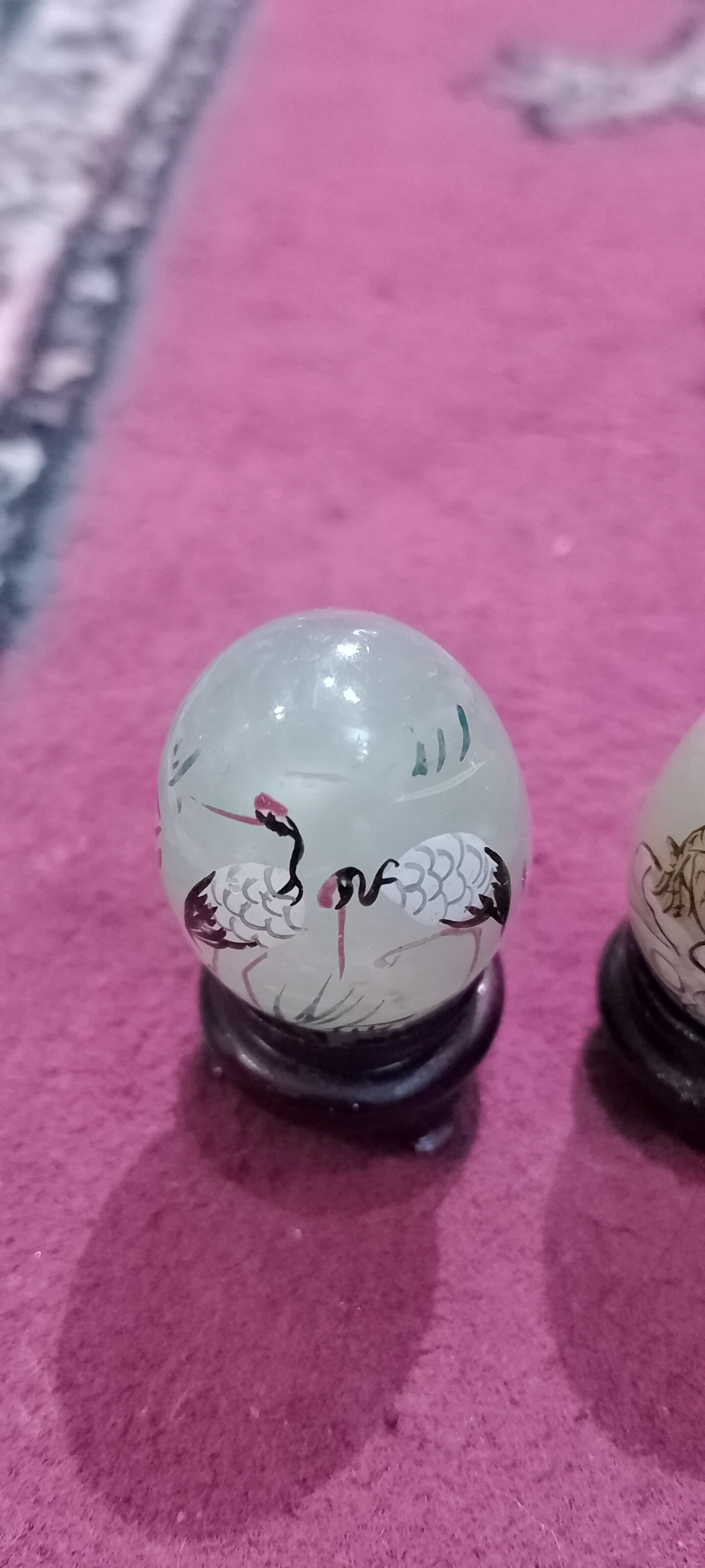 Uova in Giada con poggia pietra in legno misure altezza 3.5