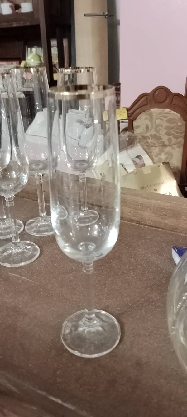 Servizio bicchieri in cristallo con bordura dorata misure altezza 22 cm.