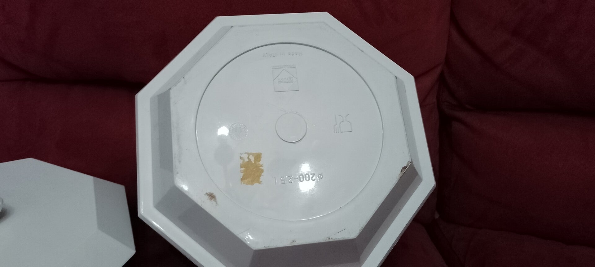 Porta biscotti in plastica rigida disegnata. Misure diametro 25 altezza 18.