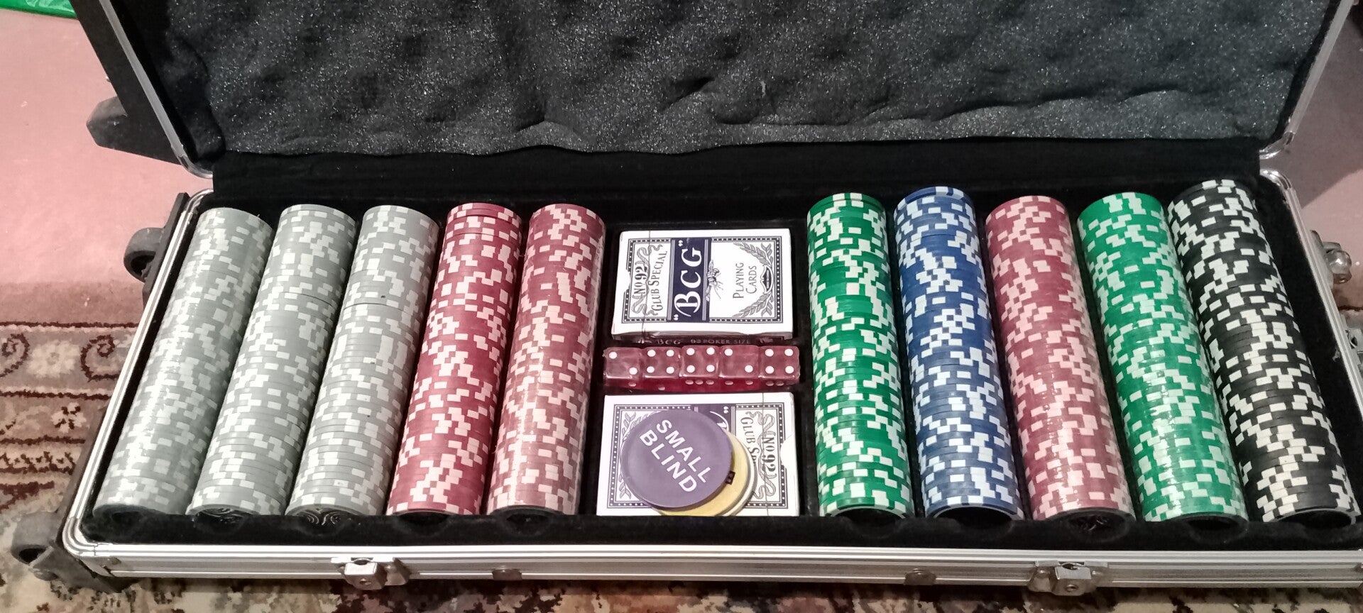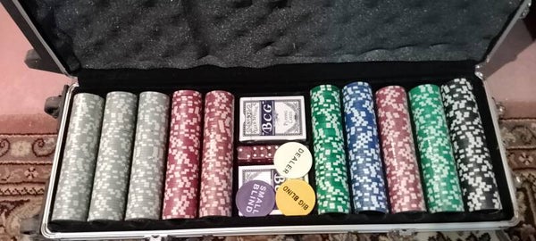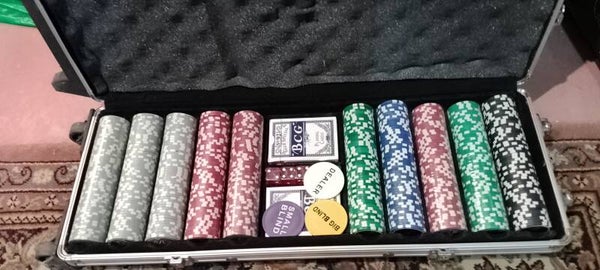 Valigetta completa pari al nuovo di fish e carte Poker. Alcune fish e le carte sono in ottime condizioni.