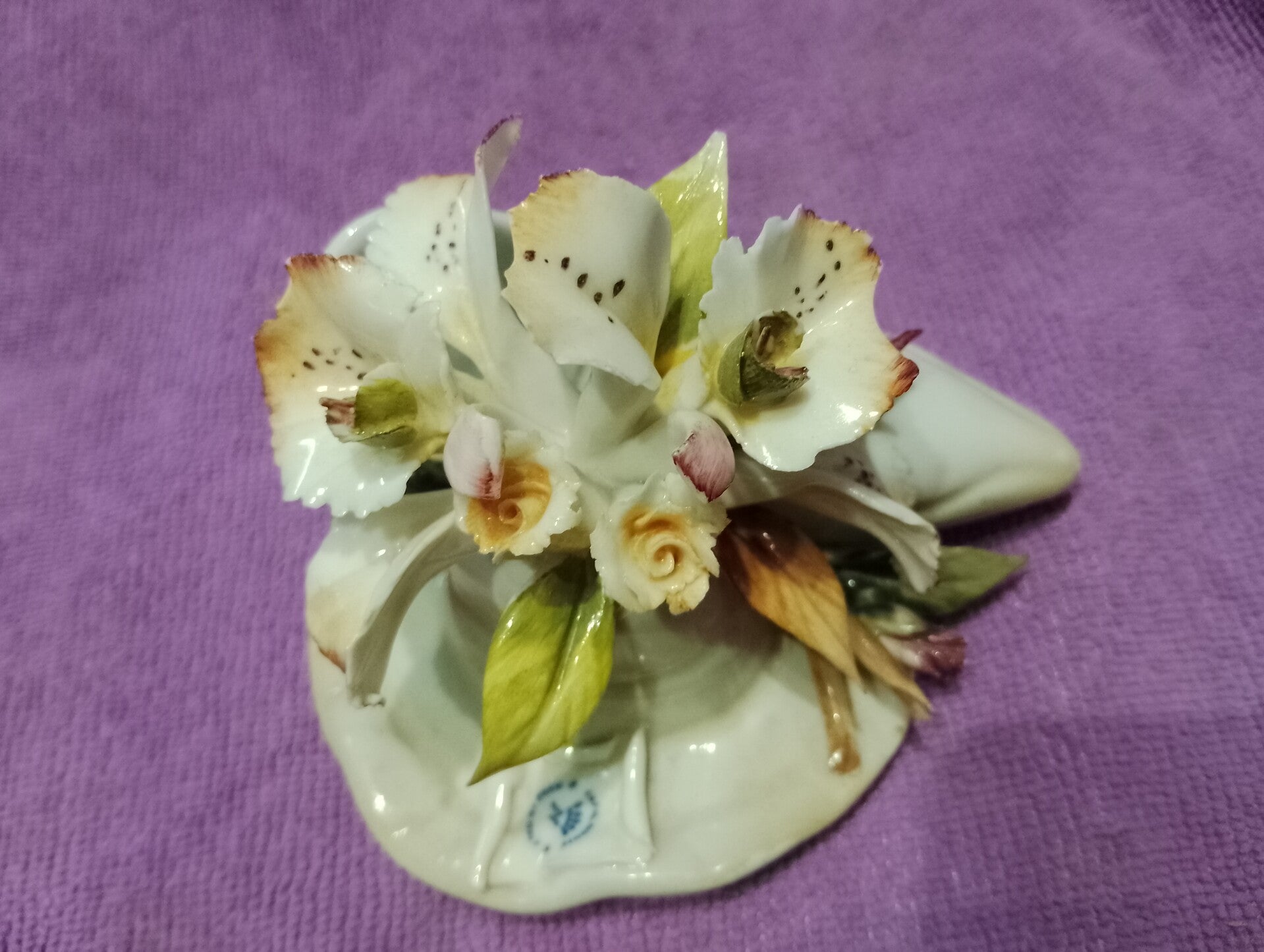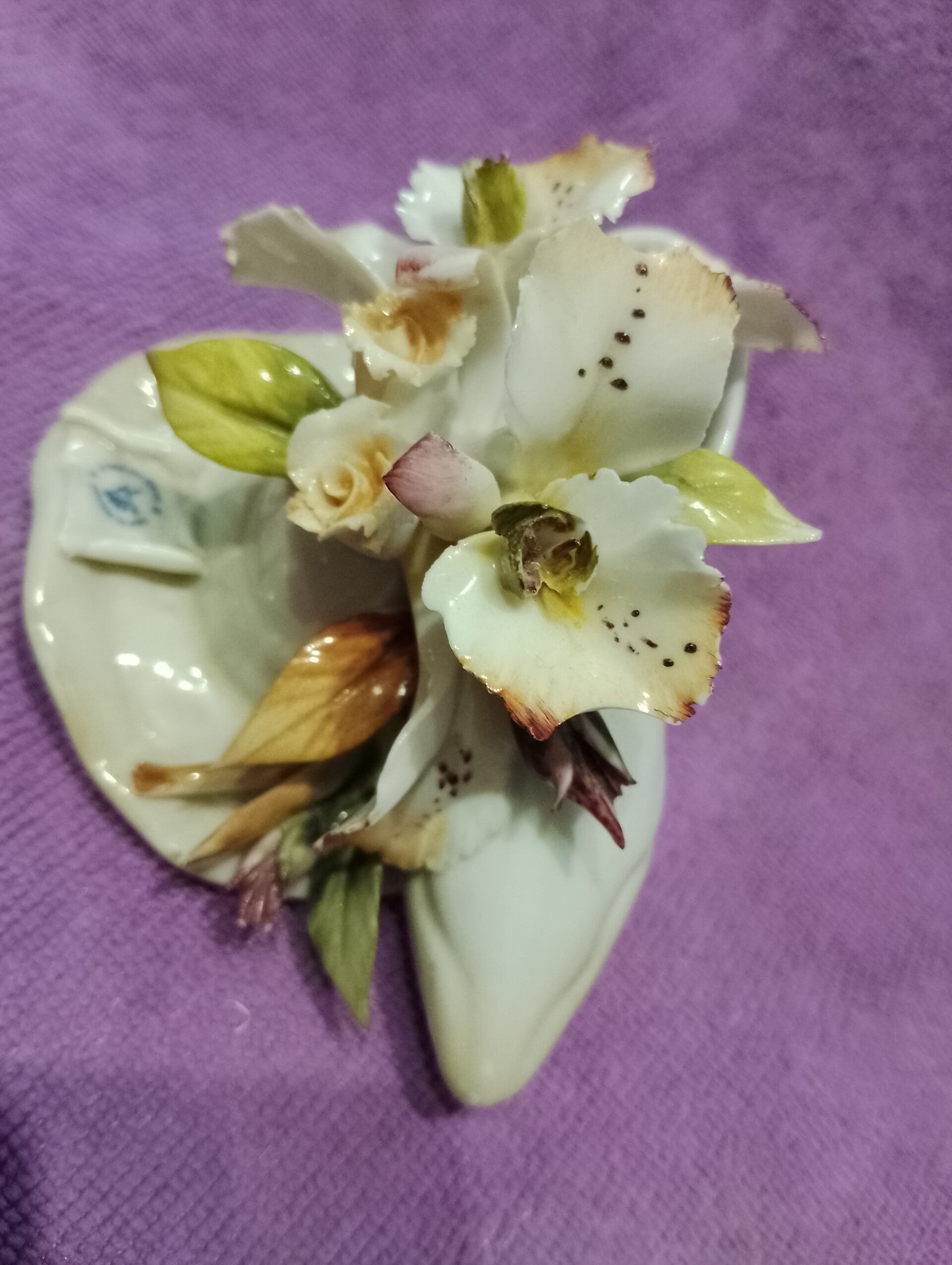 Scarpetta con fiori capo di monte misura lunghezza 11 cm 8 larghezza