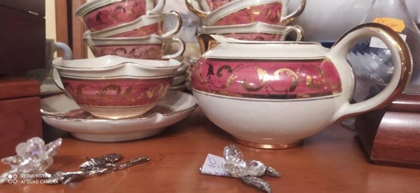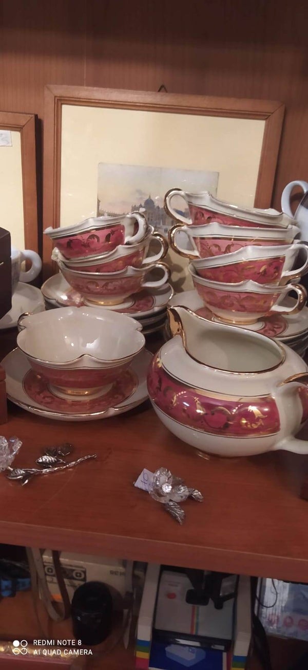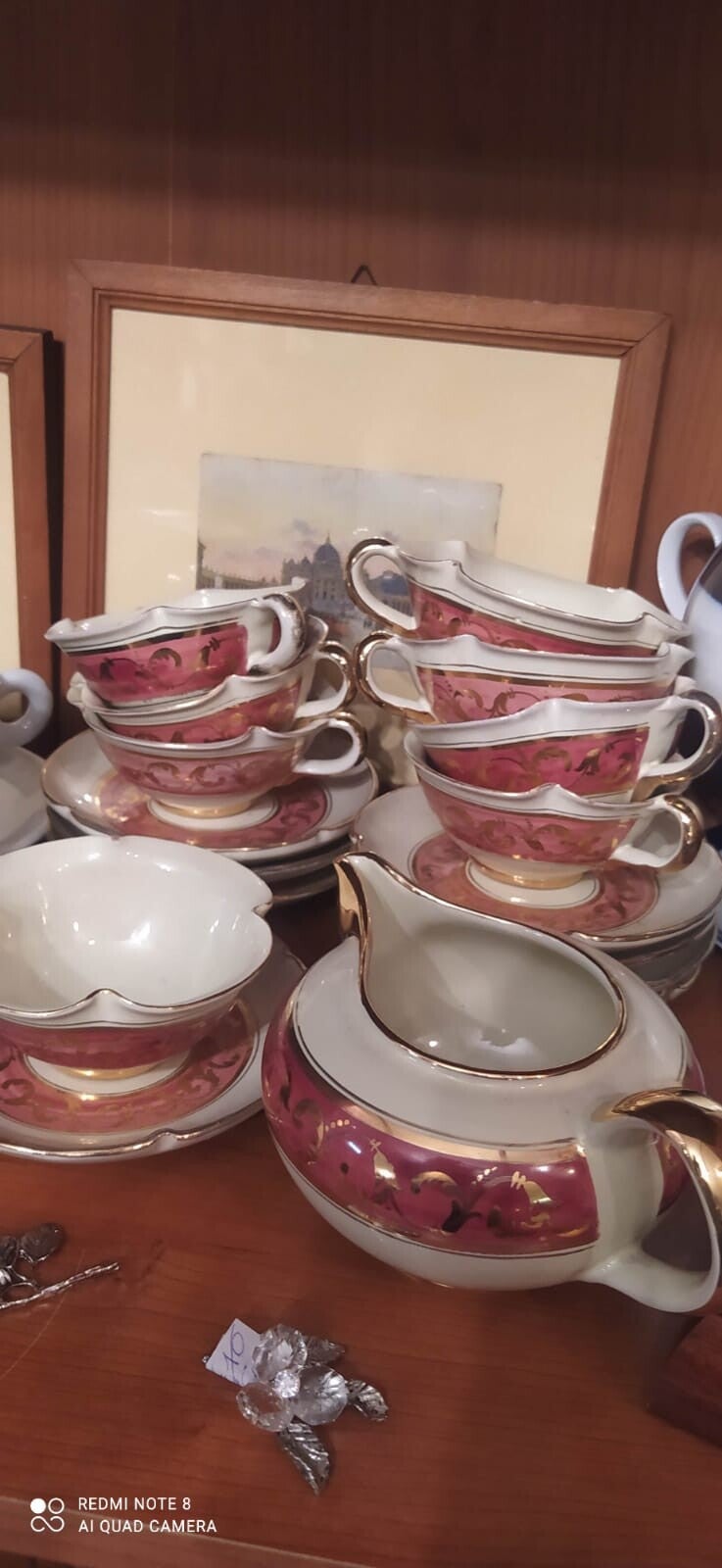Servizio da thè ceramica di Orvieto per 8 persone completo di tazzine e piattini prodotto pari al nuovo .