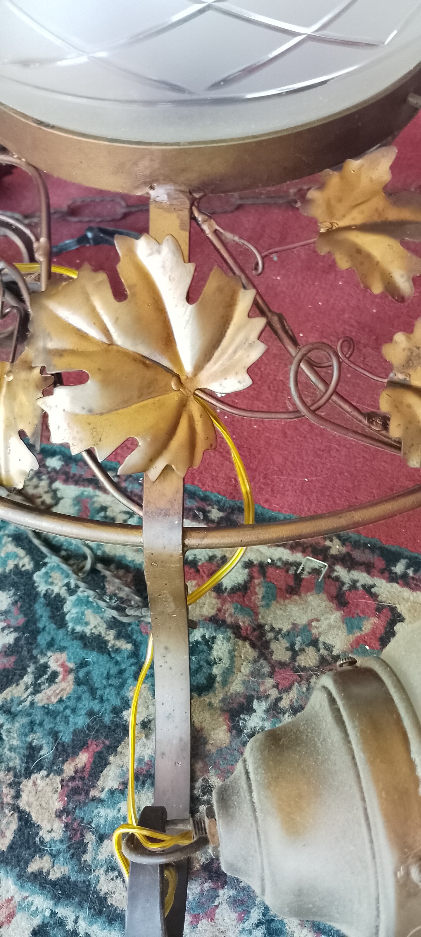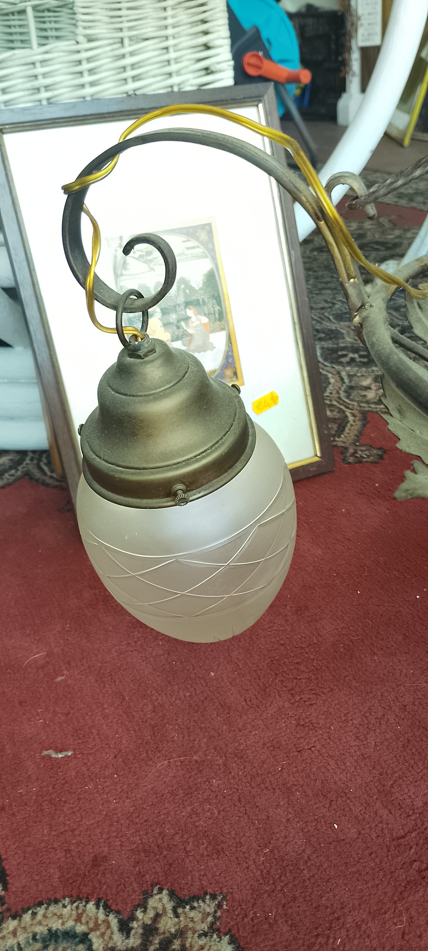 Lampadario lavorato a mano in rame con n 4 opaline a 4 luci
