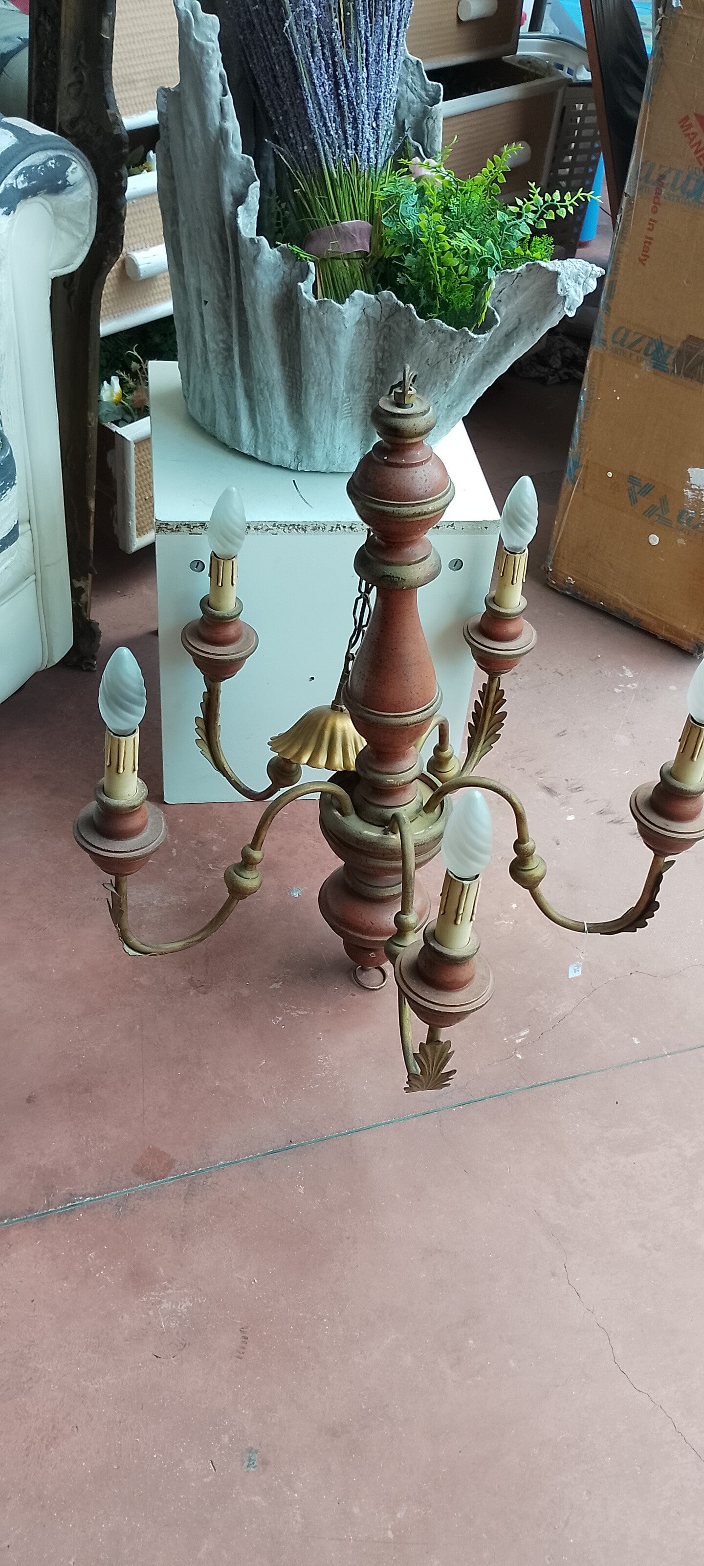Lampadario legno ed ottone 5 braccia in ottime condizioni