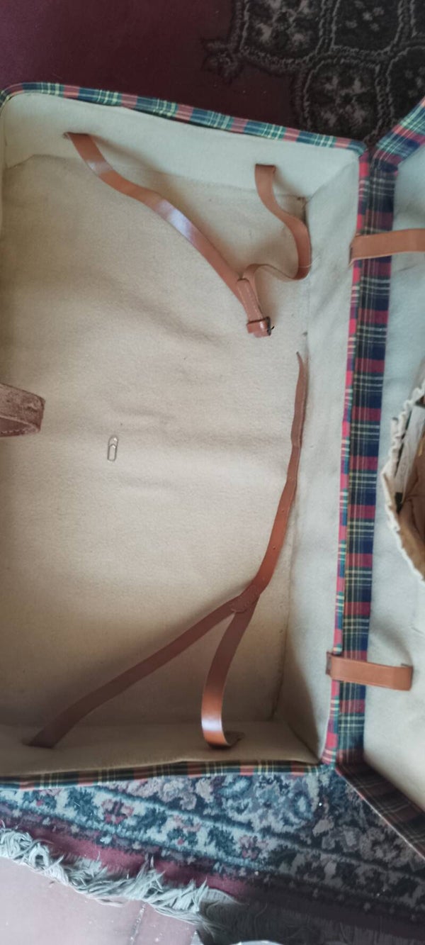 Valigia vintage stoffa scozzese e cuoio misure 36 x 56
