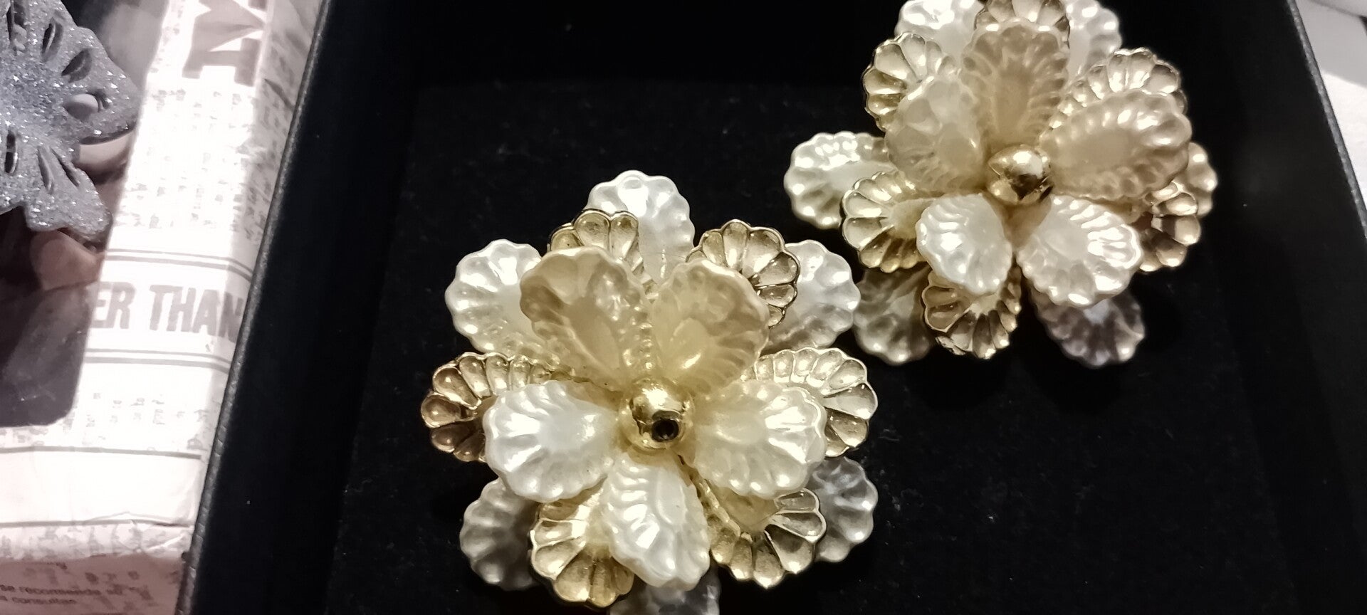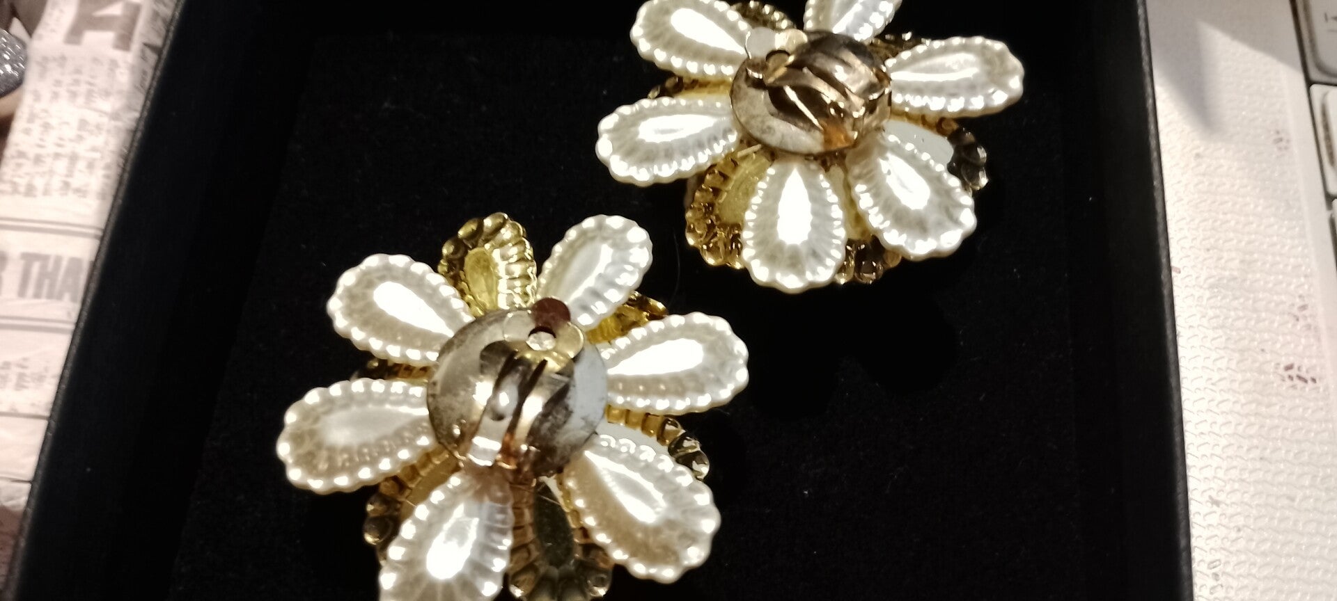 Orecchini vintage con clips lavorazione a forma di fiore diametro 5 cm in ottime condizioni.