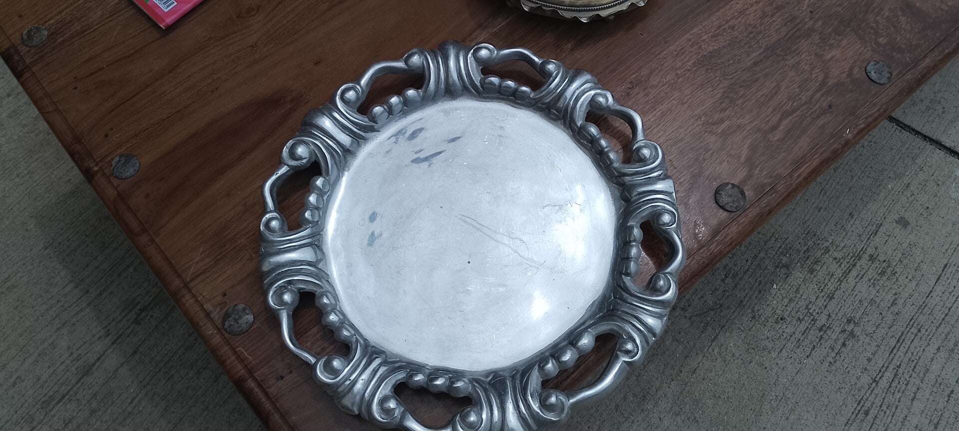 Vassoio lavorato in alluminio misure diametro 31 cm in ottime condizioni
