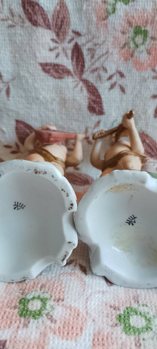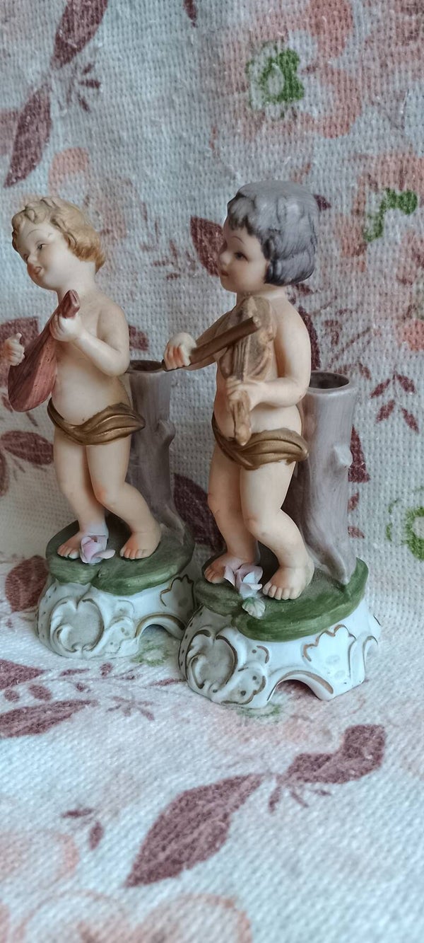 Coppia di Capodimonte a vasetto misure altezza 16 cm diametro 7 cm.