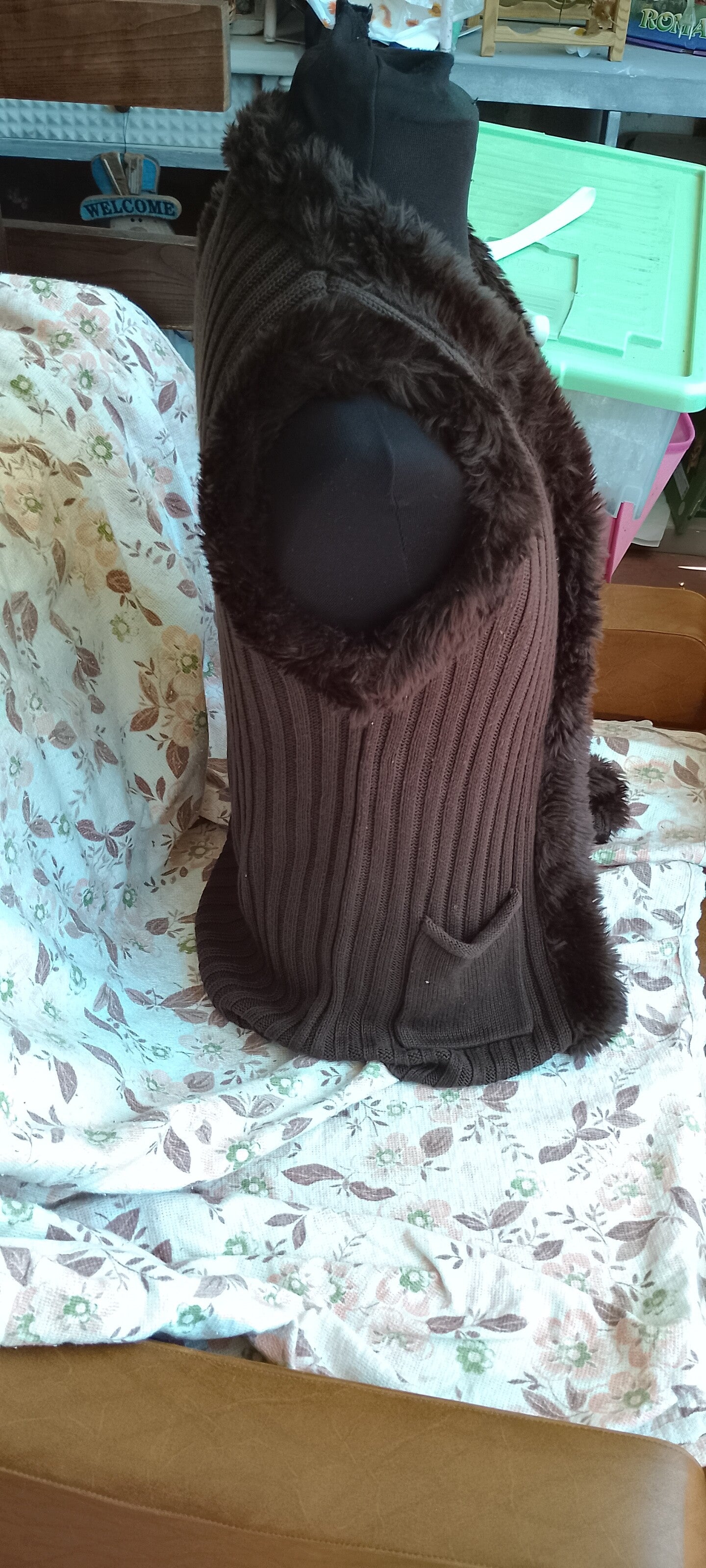 Abbigliamento donna ,cardigan smanicato con pelliccia.