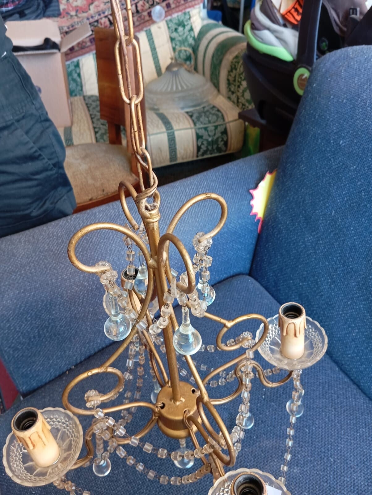 Lampadario a 3 braccia una coppetta porta lampadina leggermente crepata ma completa di tutti i pezzi.