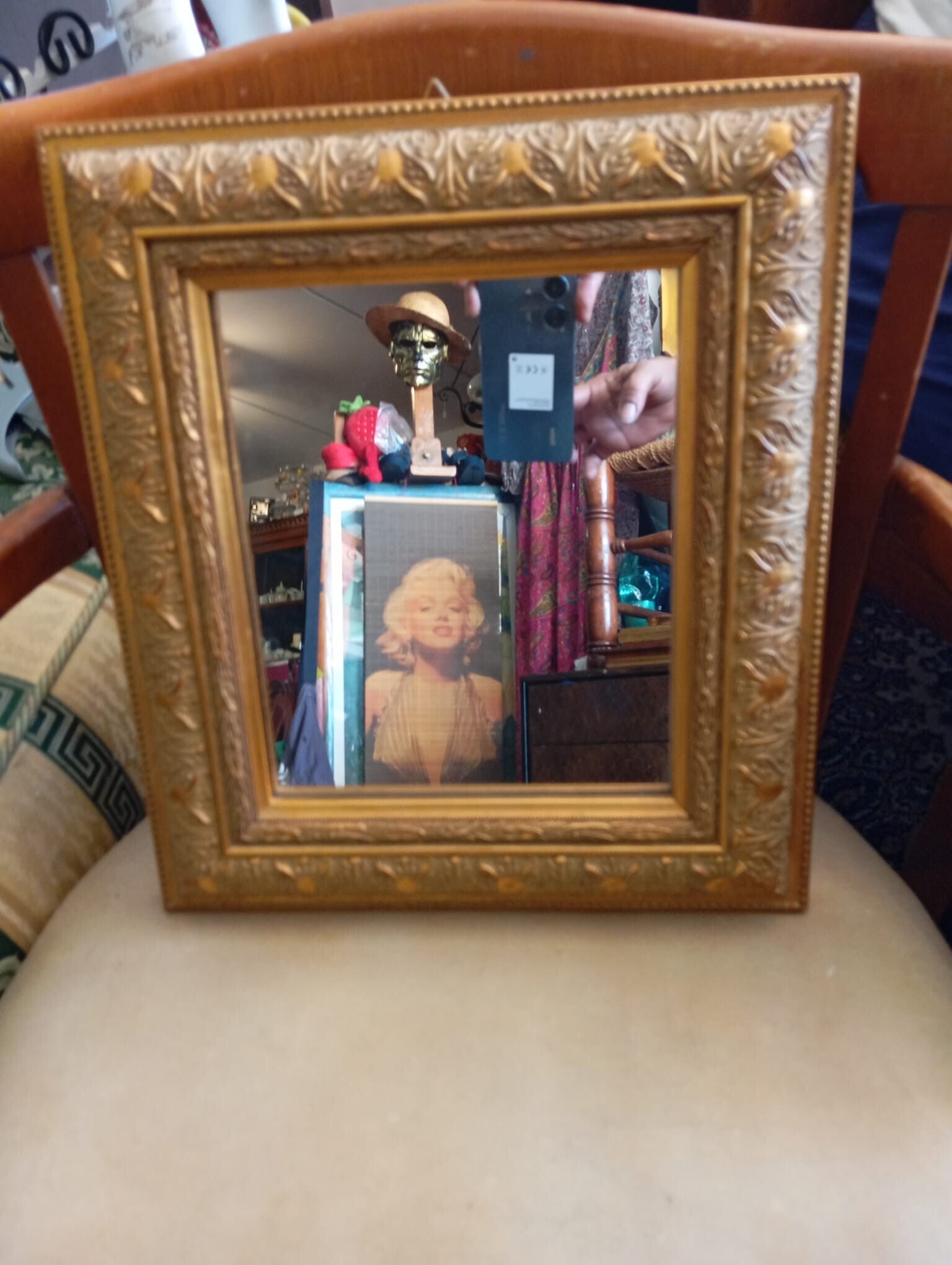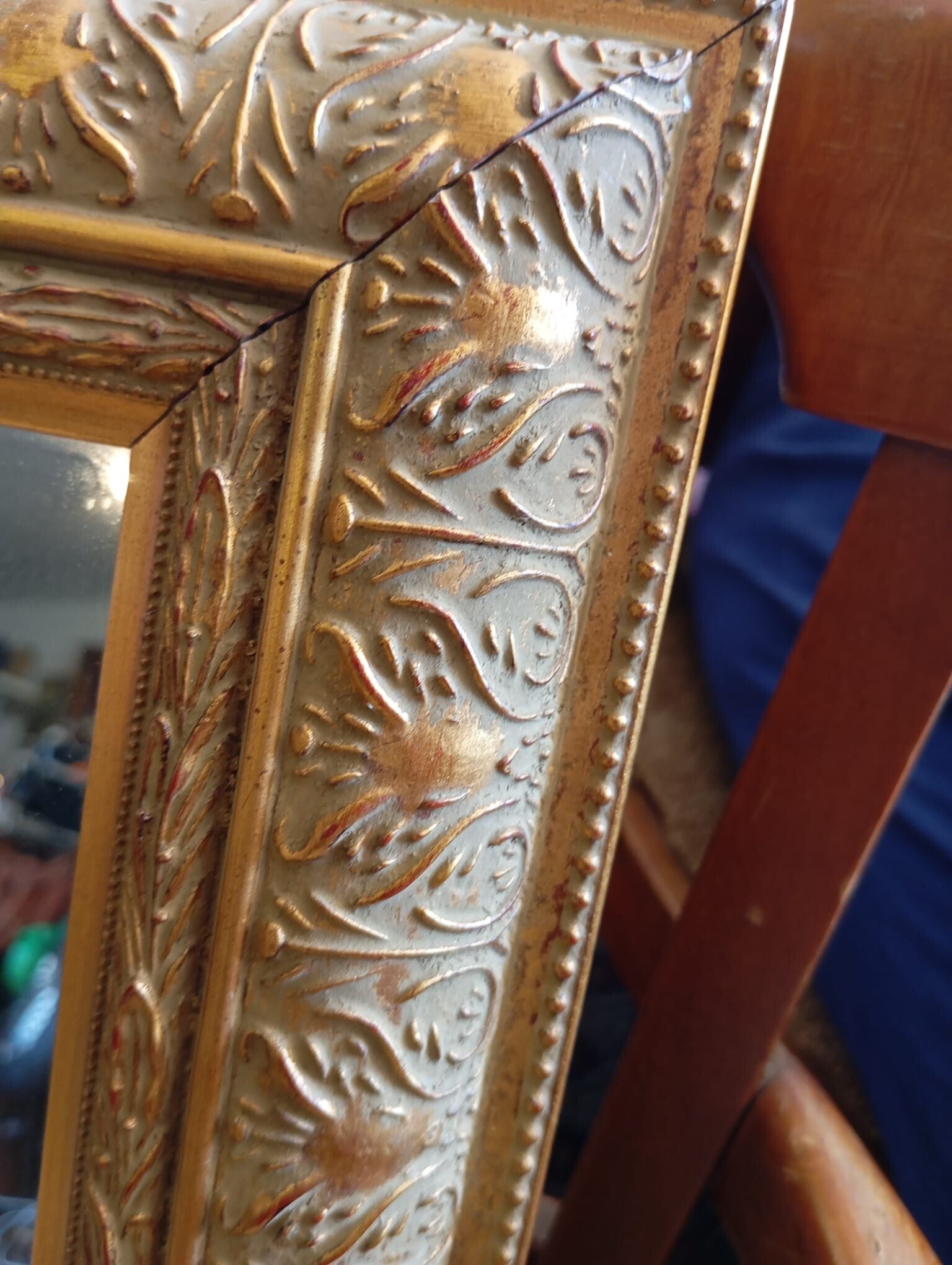 Specchio con cornice in legno intarsiato misure 36x32 .