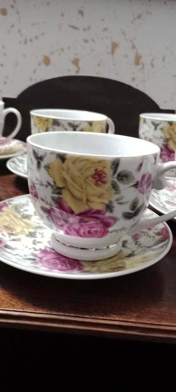 Servizio da the fiorato composto da n 6 tazze e n 6 piattini. Ottime condizioni pari al nuovo.