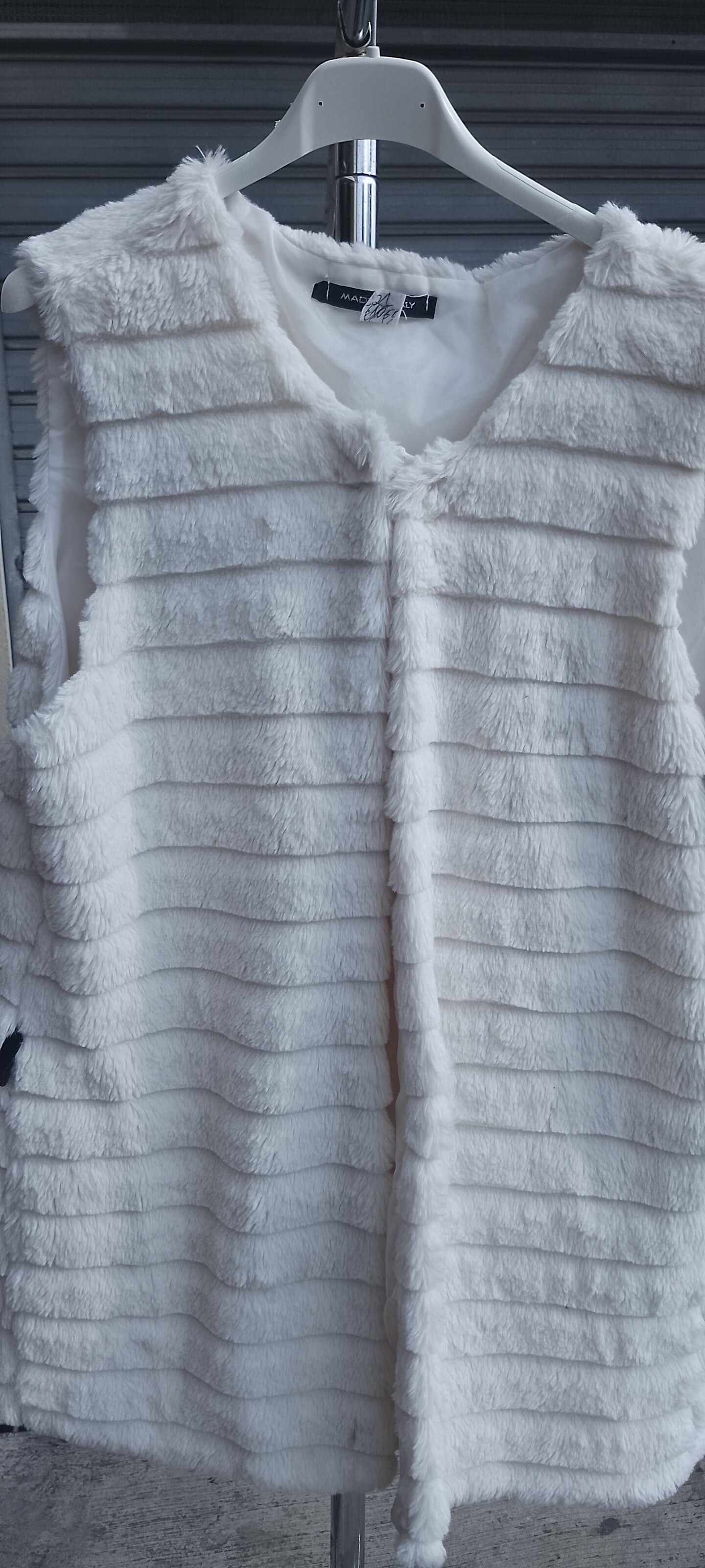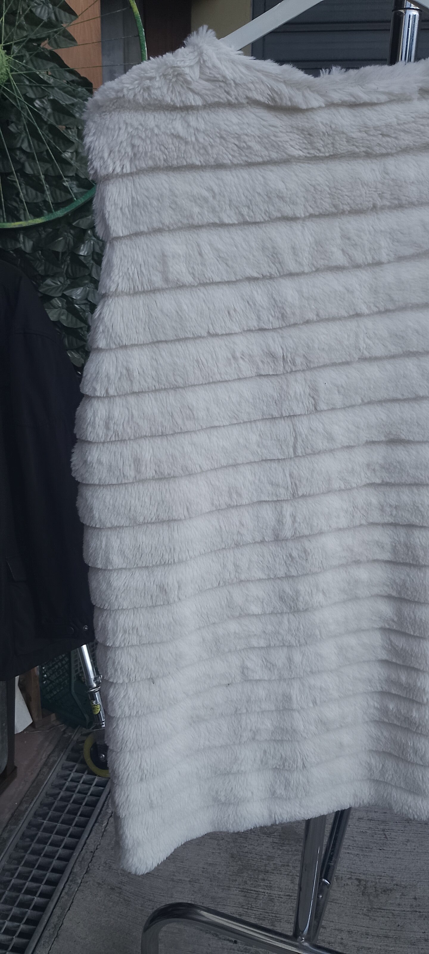 Smanicato pelliccia sintetica taglia dalla S alla XL. Prodotto pari al nuovo sprovvisto di cintura nera.