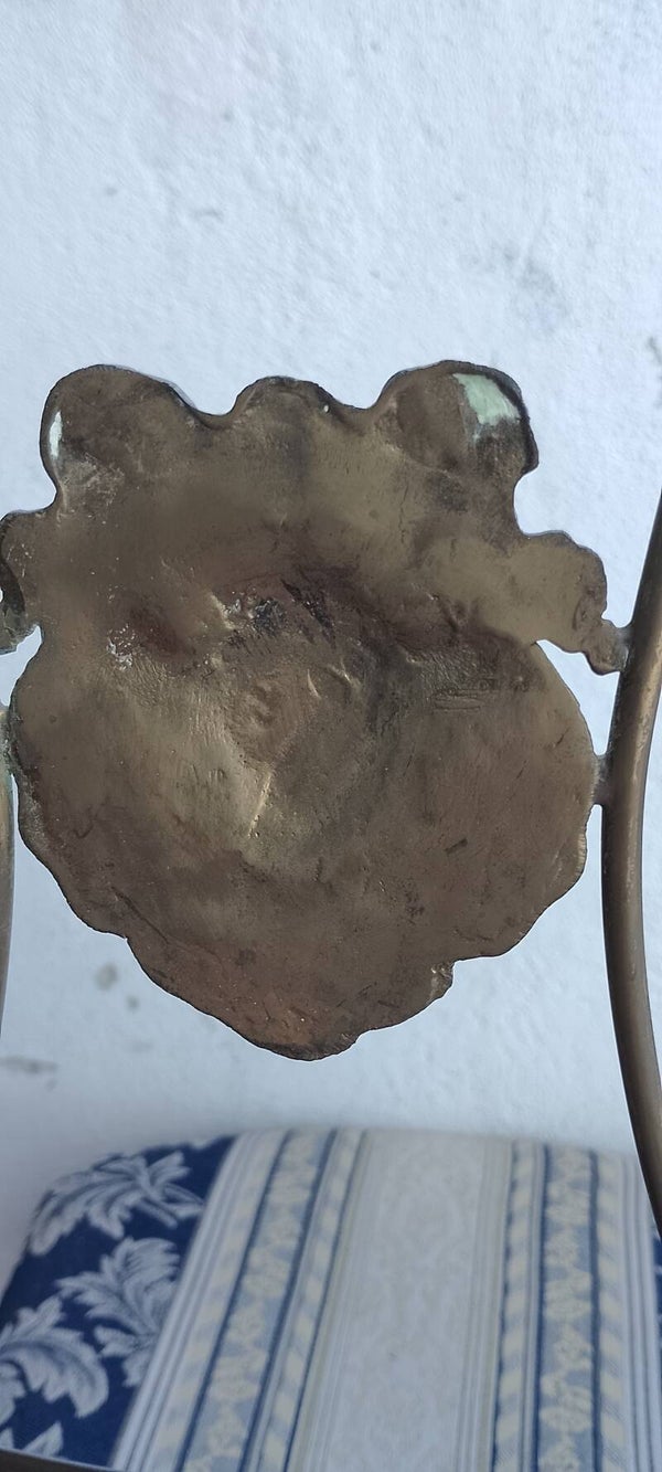 Coppia seggiole Chiavarine lavorazione in ottone. Tappezzeria risistemata, misure altezza.