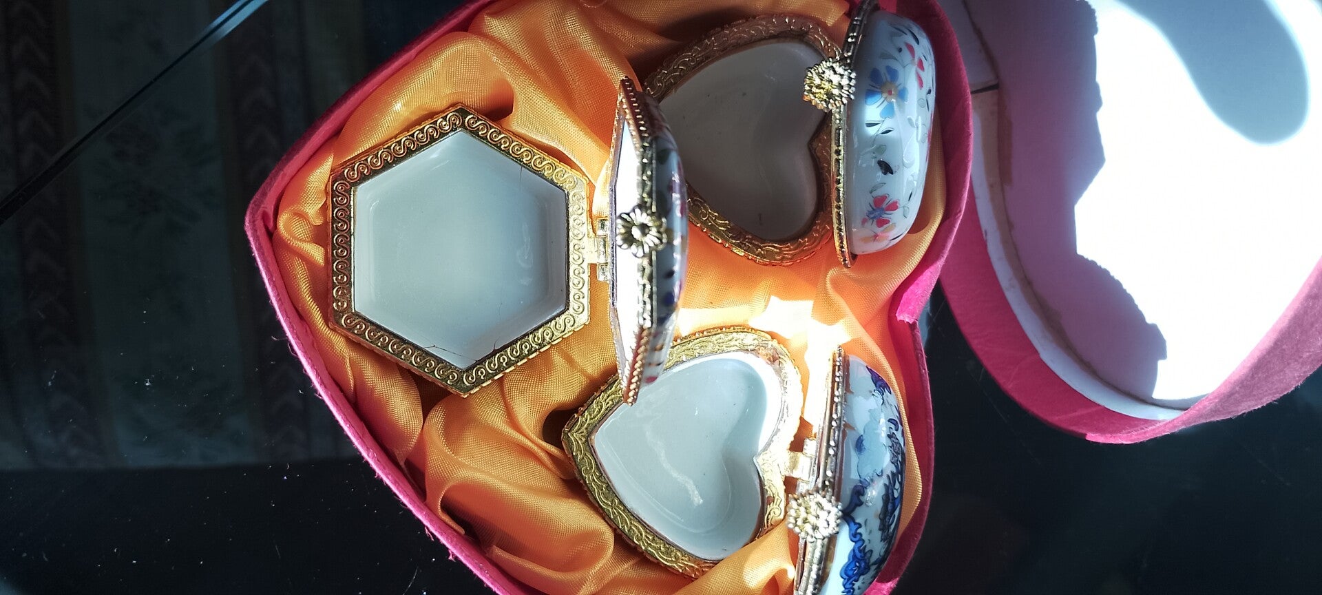 Confezione regalo a cuore con 3 scatoline in ceramica porta oggetti.