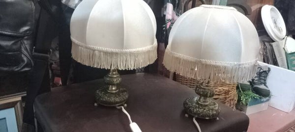 Coppia bajour con base in plastica stile alabastro. Misure altezza 30 x 20. Prodotto pari al nuovo