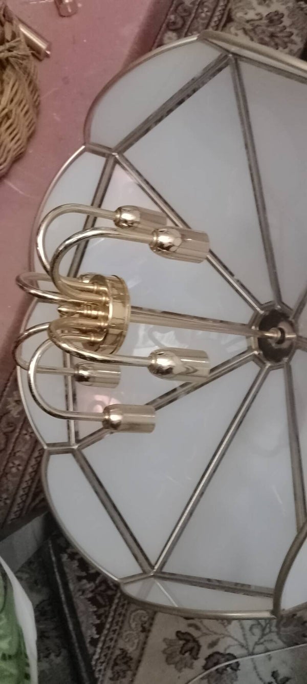 Lampadario in vetro e ottone effetto dorato 6 braccia..