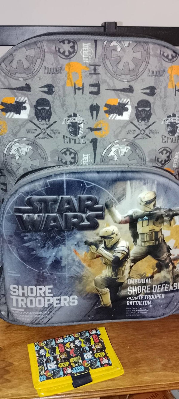 Zaino in ottime condizioni STAR WARS completo di portafoglio. Ottime condizioni pari al nuovo misure altezza 40 larghezza 32.