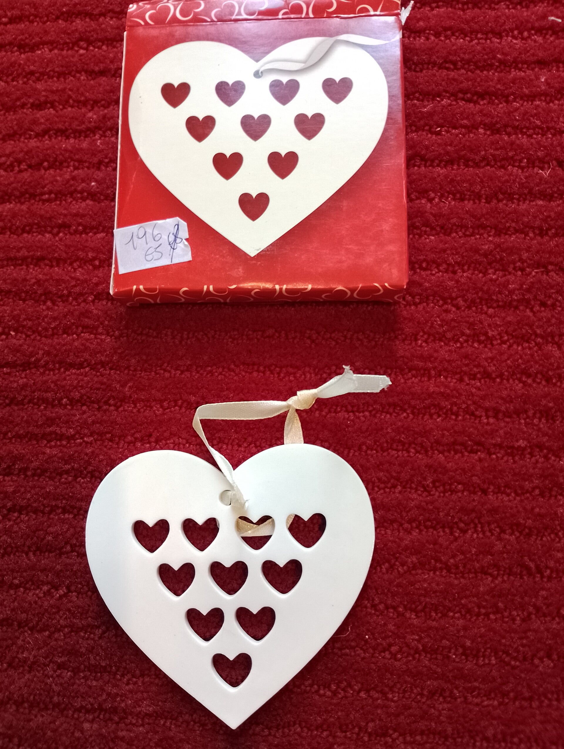 Ciondolo in ceramica cuore lavorato con cuoricini. Prodotto pari al nuovo.