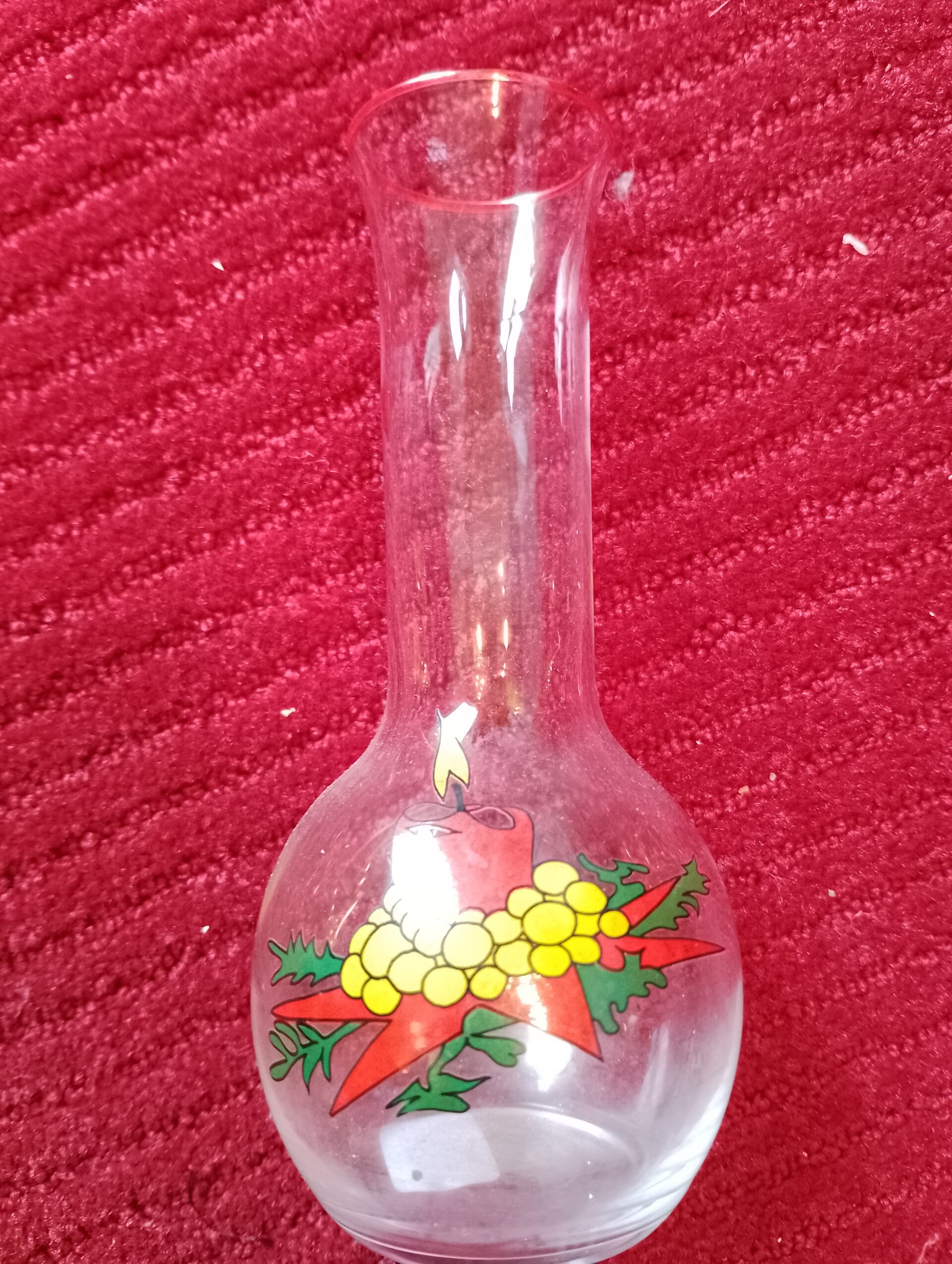 Bottiglietta natalizia in vetro misure altezza 16 cm. Prodotto pari al nuovo.