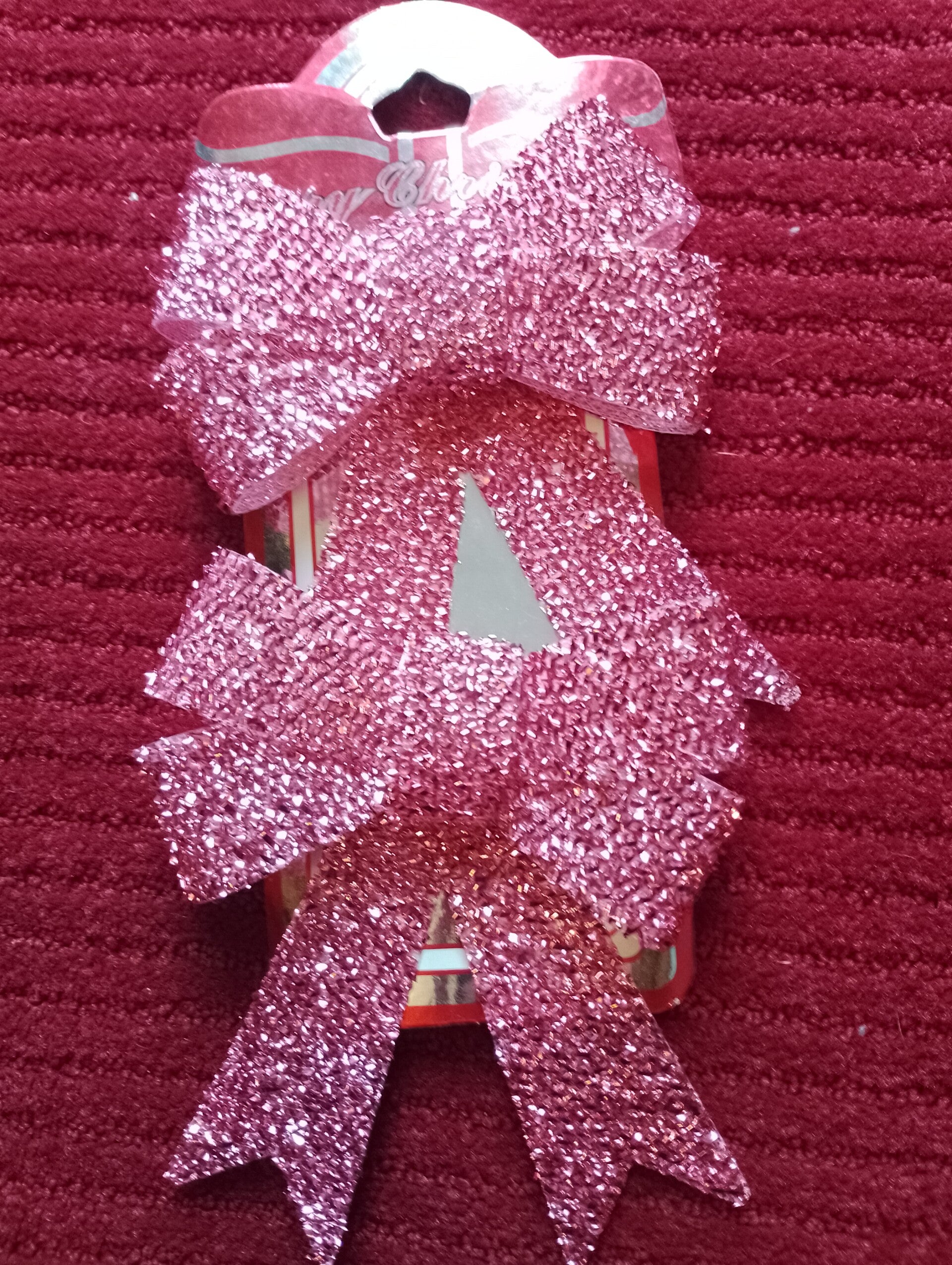Coppia di fiocchi rosa brillantinato.