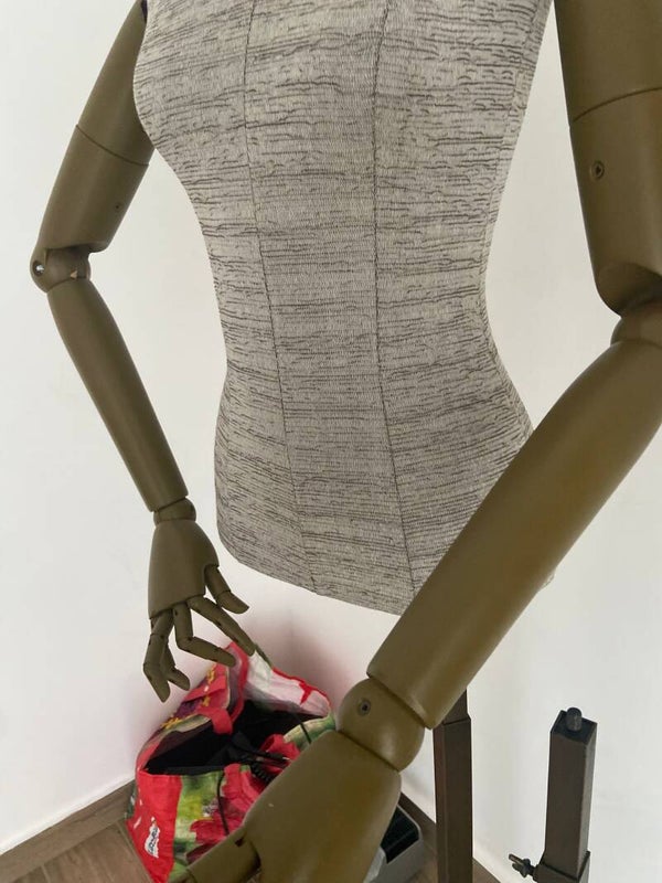 Manichino professionale base in ferro braccia regolabili in plastica rigida tipo legno busto e testa in stoffa. Misure altezza 170
