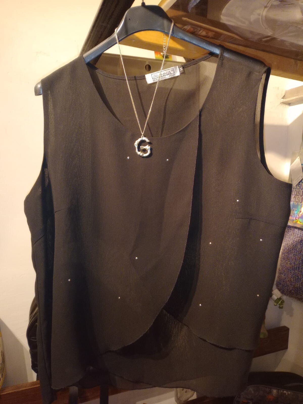 Maglietta canotta elegante 100% viscosa colore nera con piccoli punti luce sul davanti