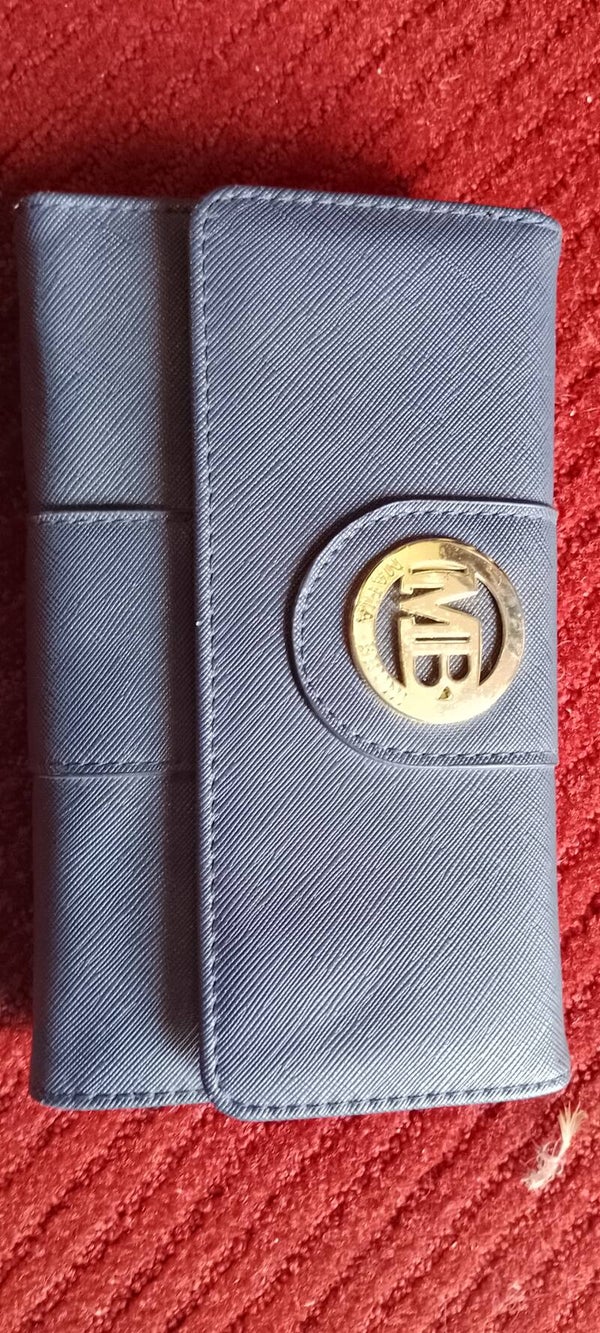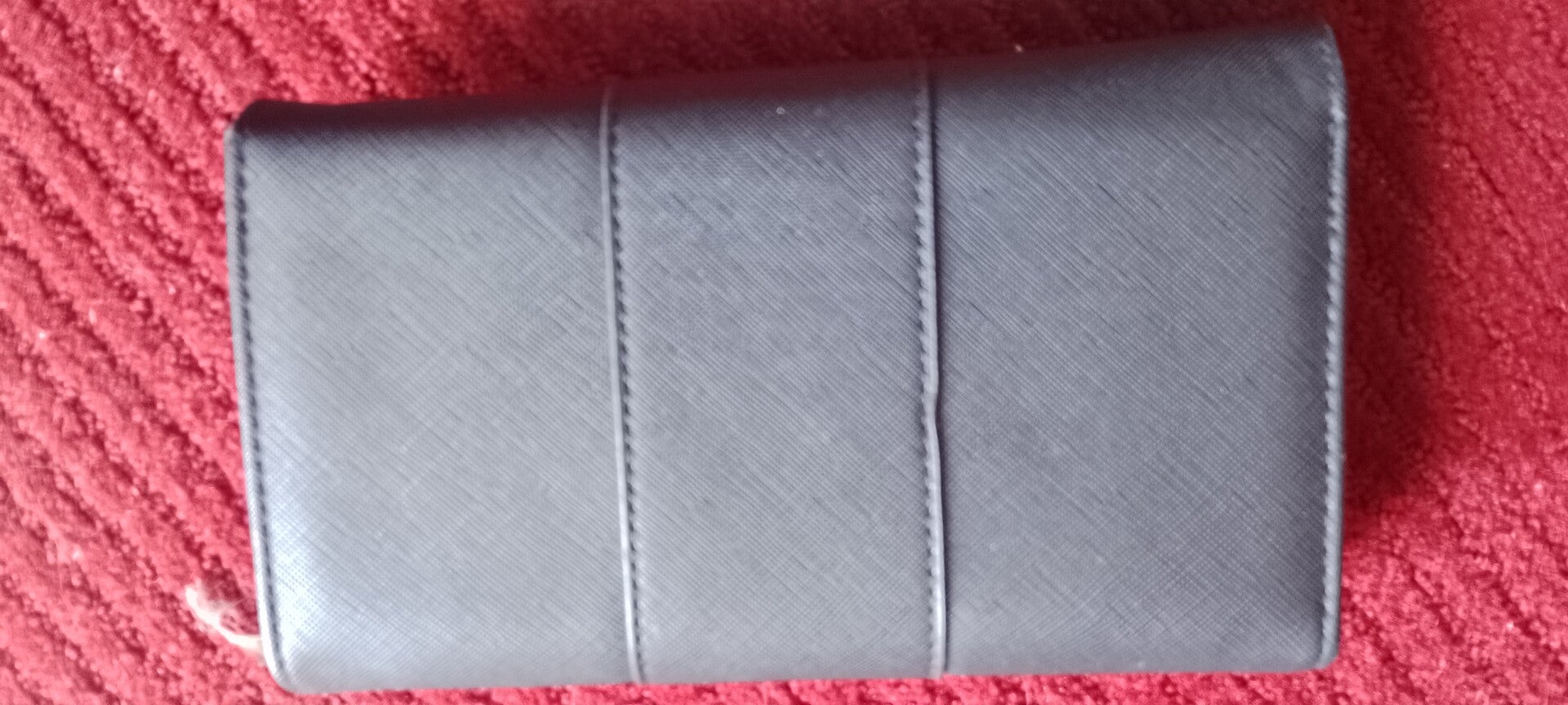 Portafoglio donna multi tasche con una stemma dorato al centro , misure lunghezza 18,5 altezza 11,5 profondità 3cm.