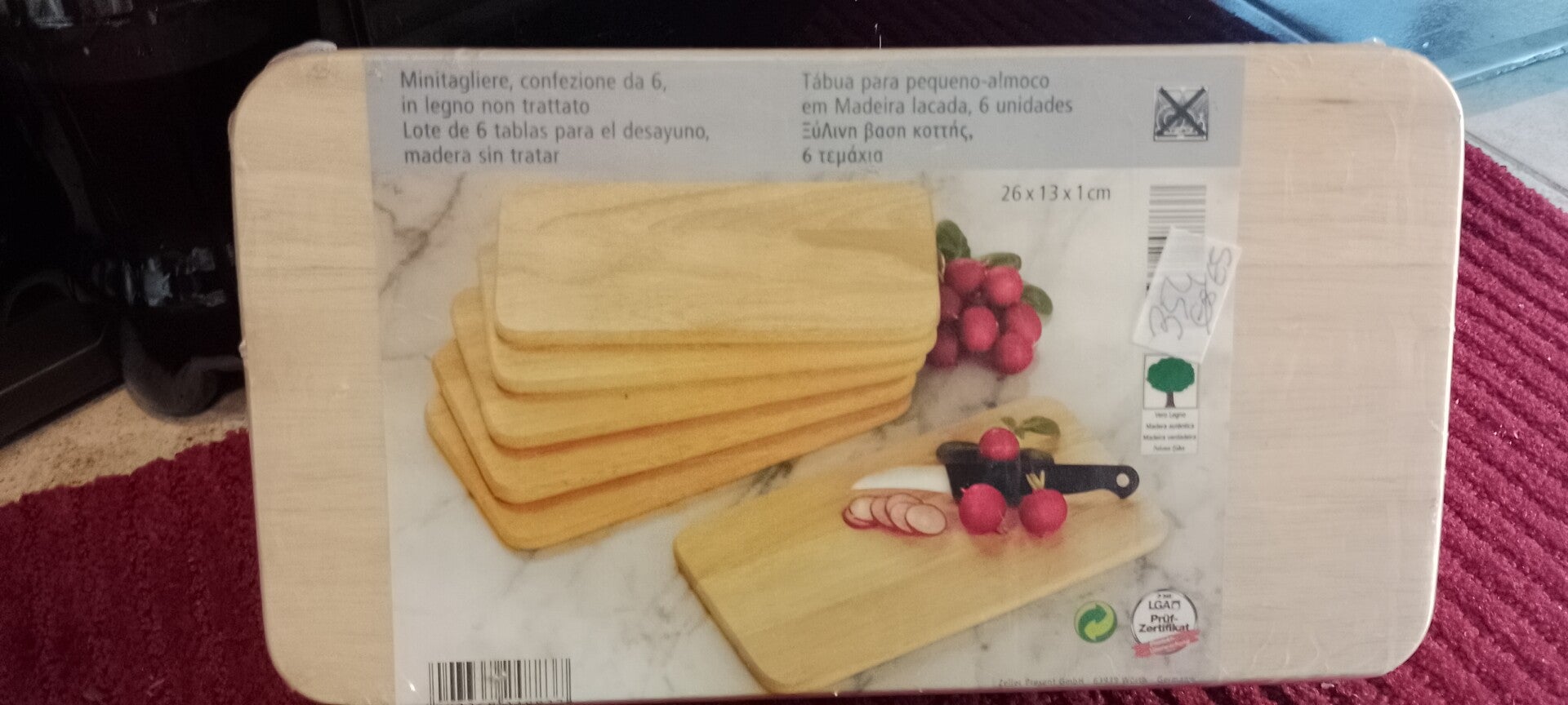 Set di n 6 taglieri in legno misure 26 x 13 x 1 cm. Prodotto nuovo