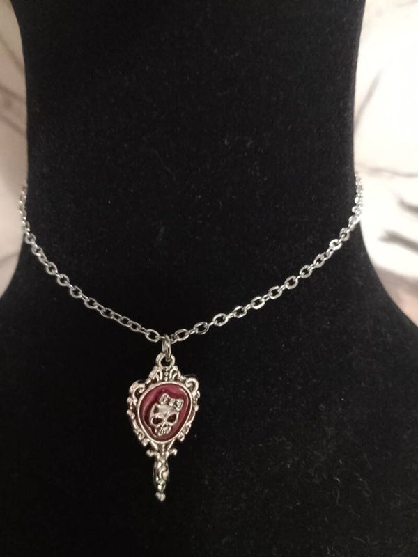 Collana con ciondolo specchio con teschio.