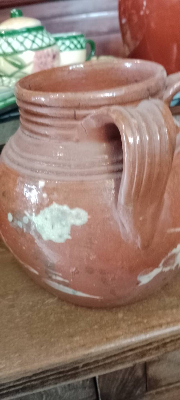 Brocca artigianale in terra cotta. Misure altezza 16 cm ampiezza 16 cm.