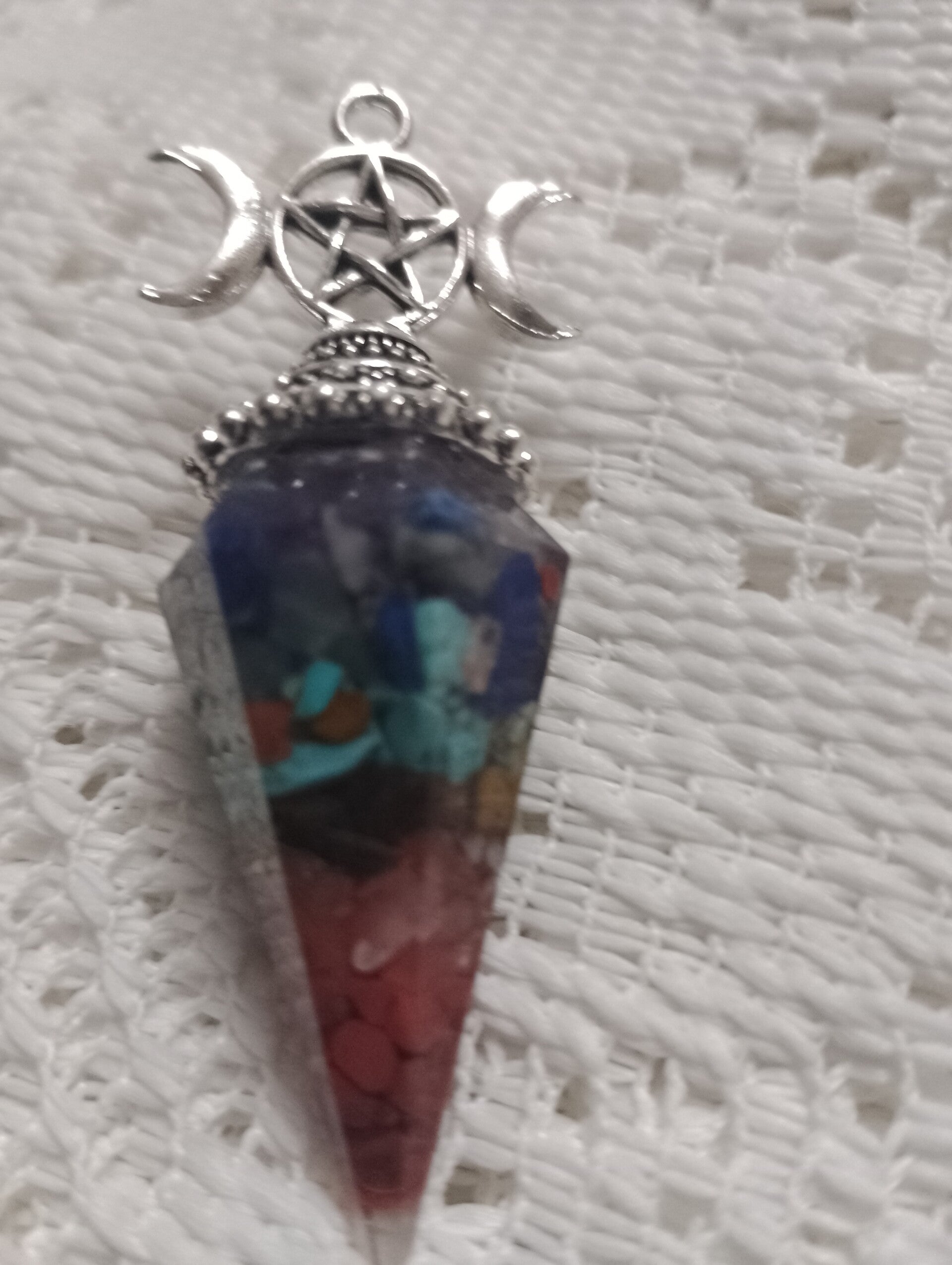 Pendolo tripla fase lunare, meditazione, guarigione cristallo pendolo esagonale. Misura lunghezza 6 cm. Prodotto nuovo