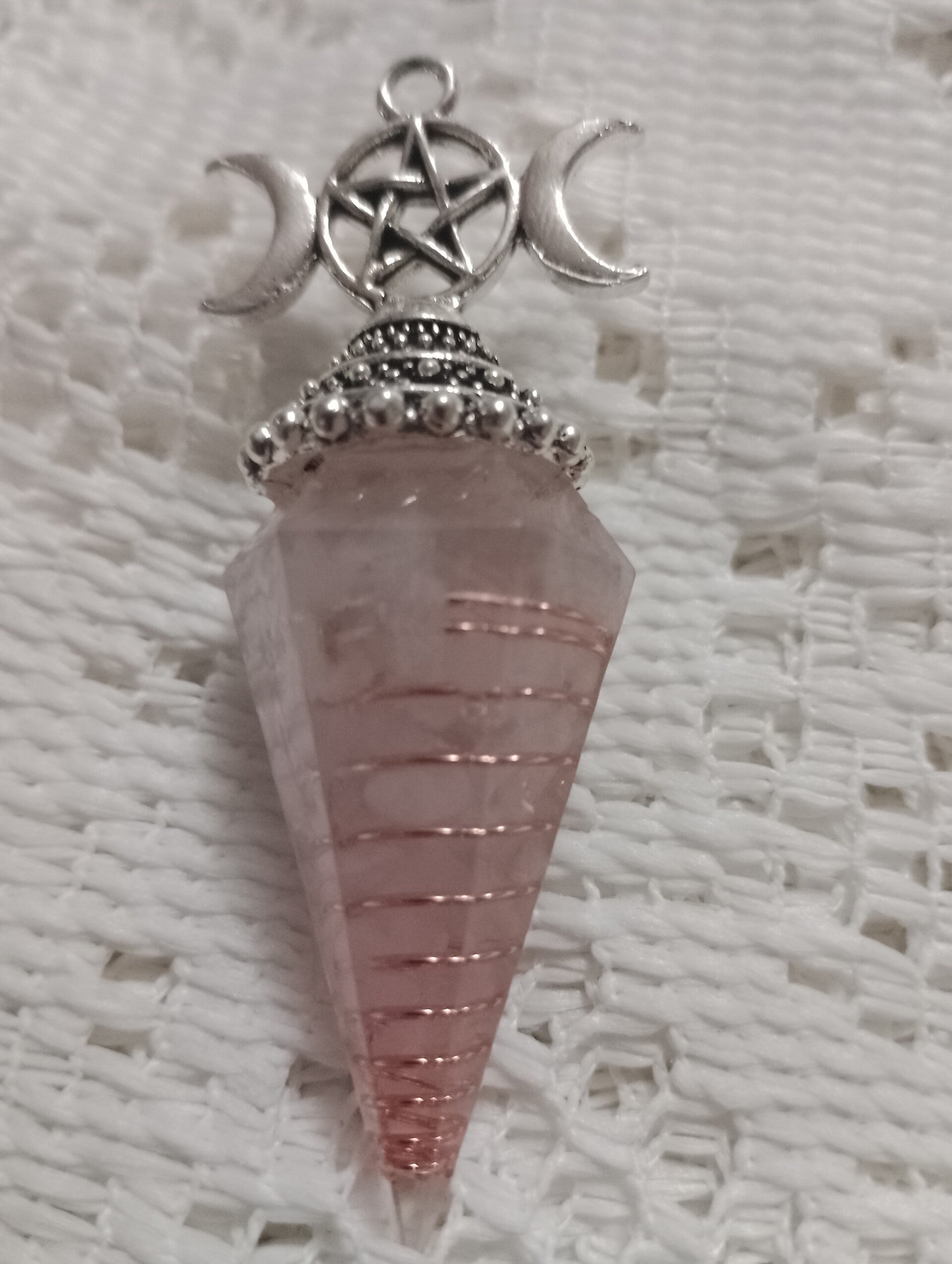 Pendolo di rabdomanzia in resina e quarzo rosa misura 6 cm. Prodotto nuovo