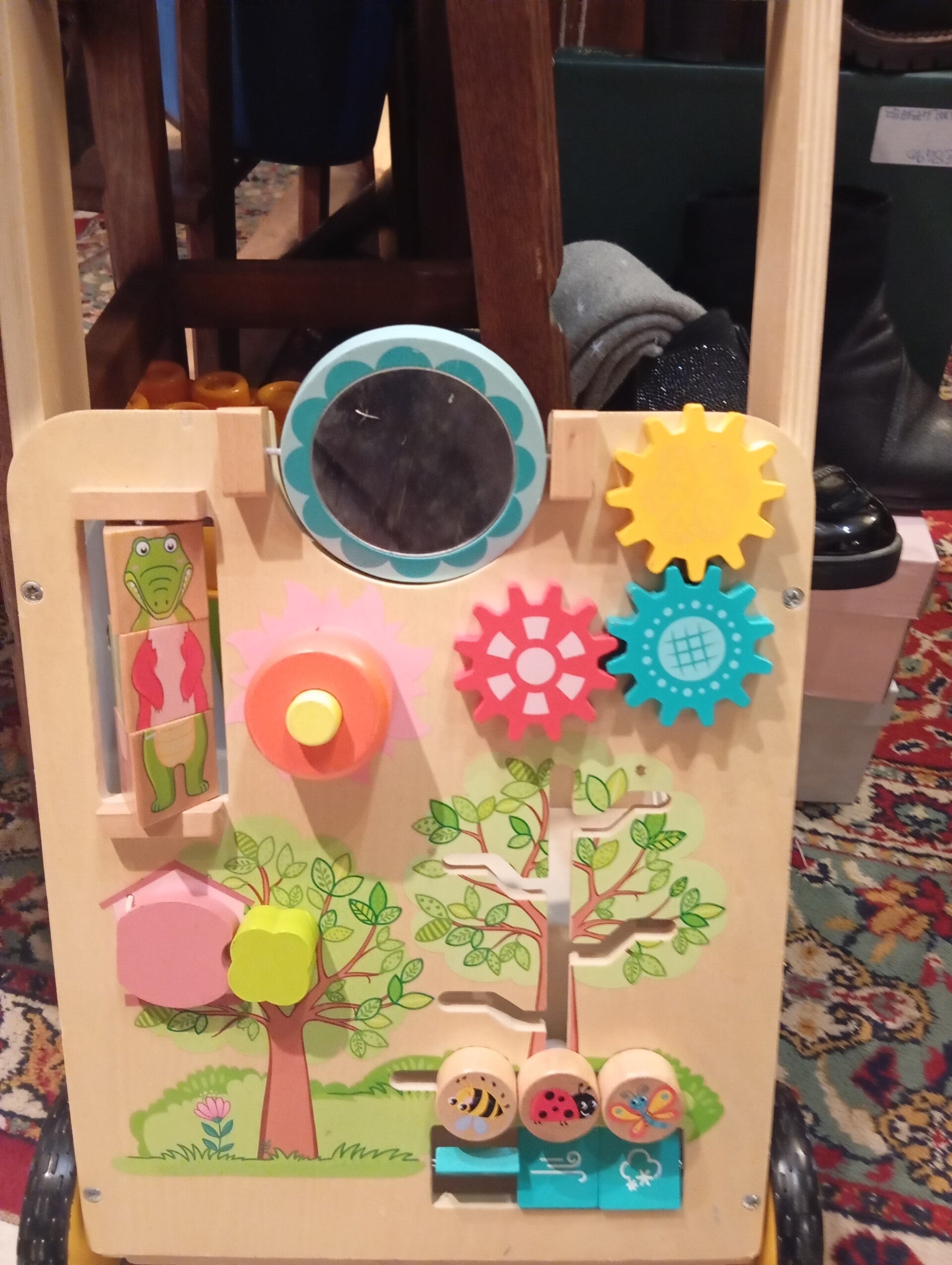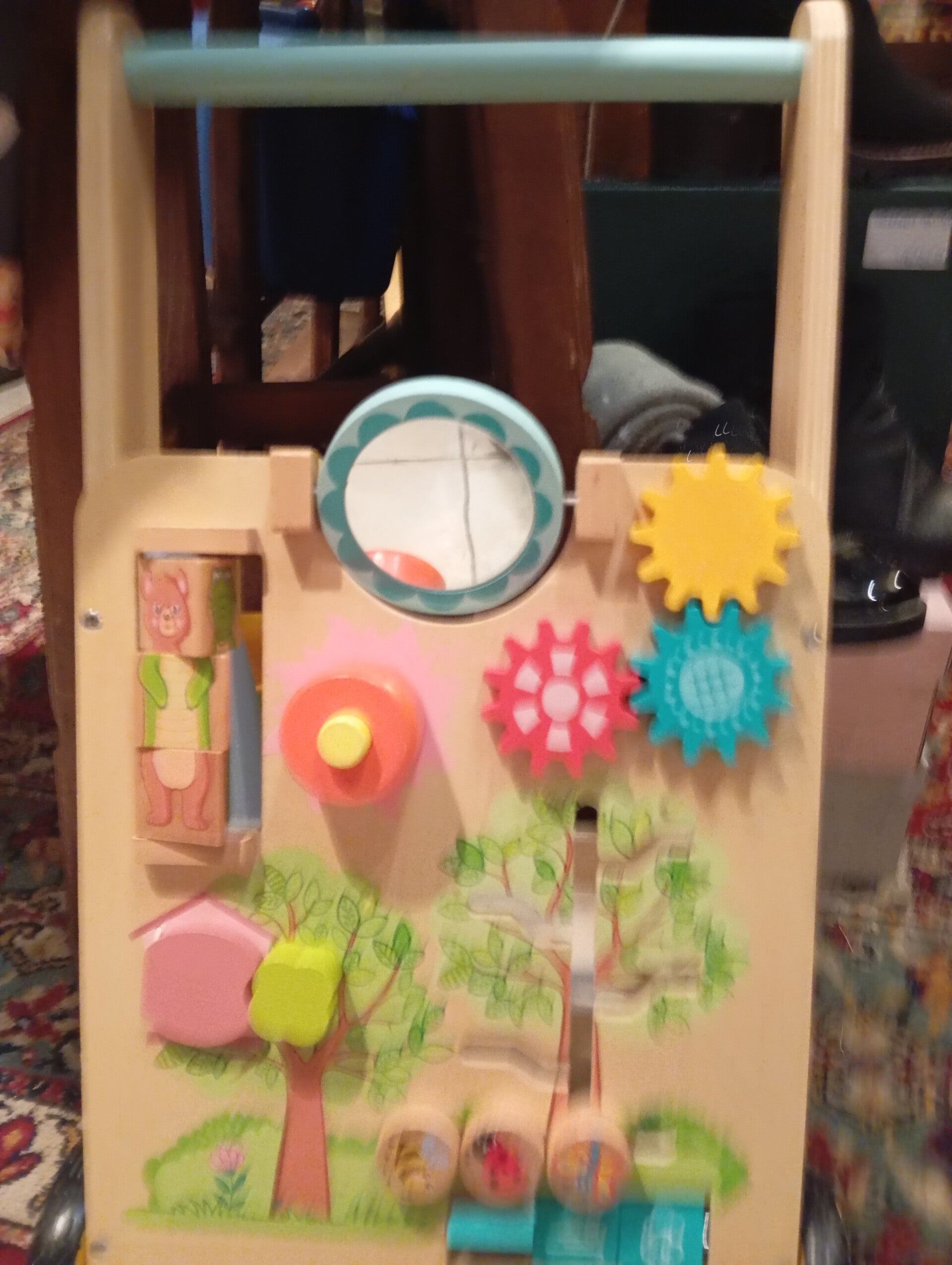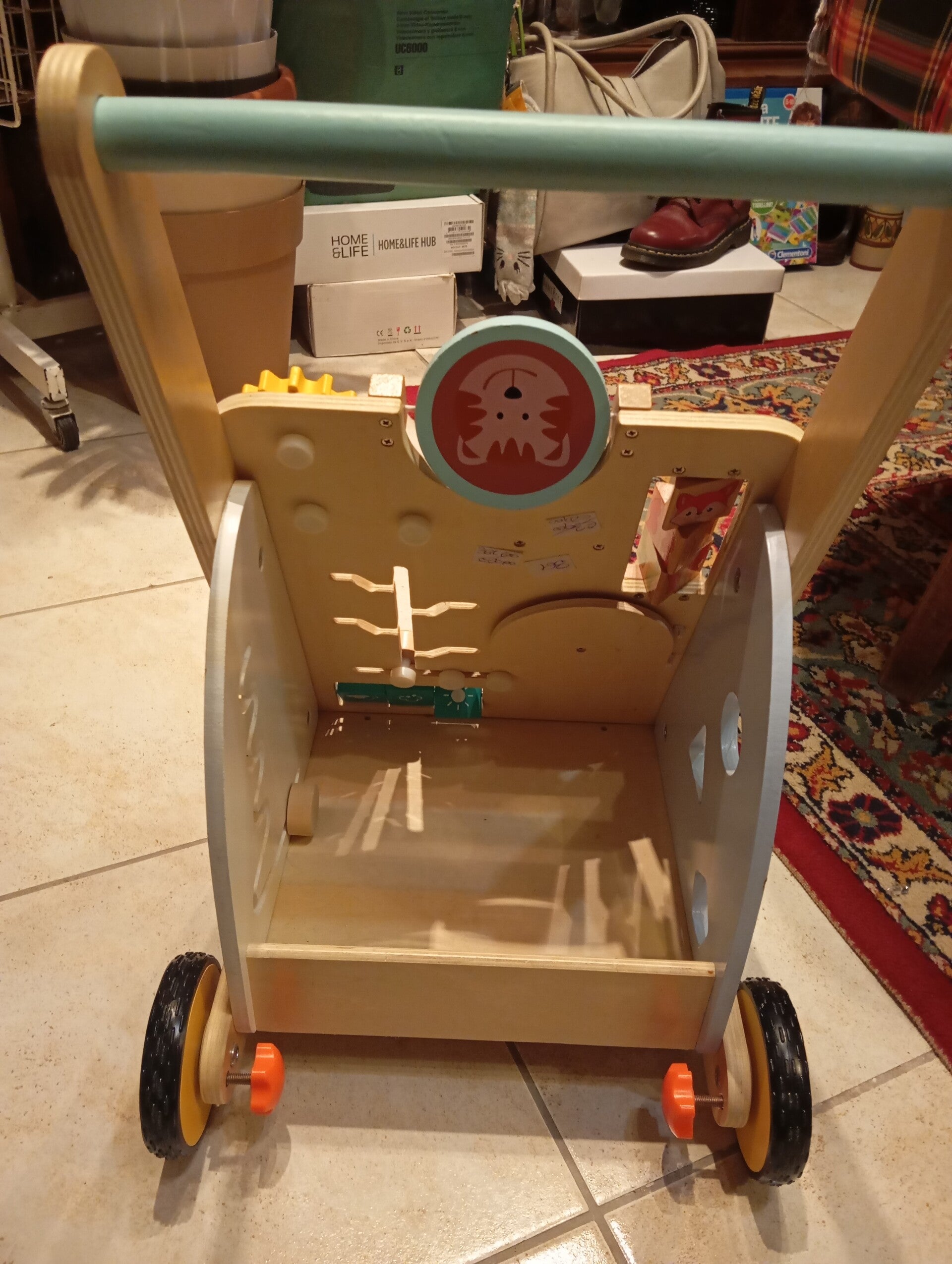 Gioco bimbo in legno interattivo. Con ruote per. Aiuto primi passi ottime condizioni. Misure altezza 53 larghezza 30.