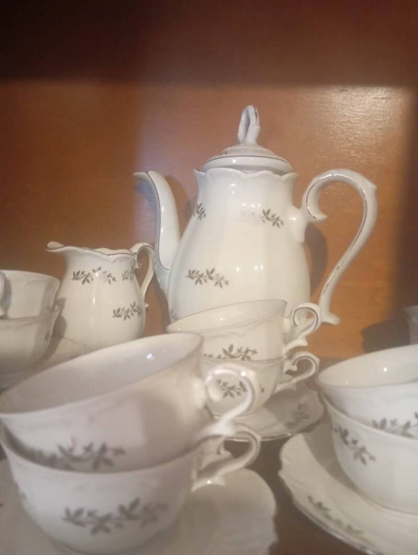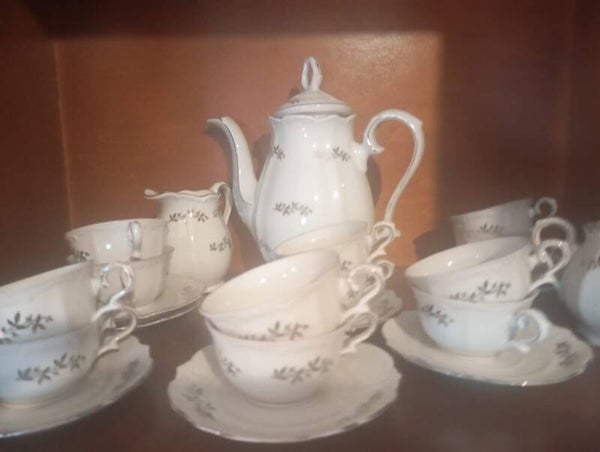 Servizio caffè composto da tazzine piattini caffettiera o teiera zucchiera lattiera.