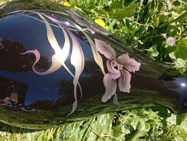 Vaso fiori con lavorazione centrale colore nero. Misure altezza 35 diametro 11. Ottime condizioni pari al nuovo