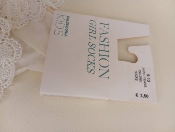 Calzino con lavorazione ricamata colore pizzo latte età 9/13 anni. Prodotto nuovo.
