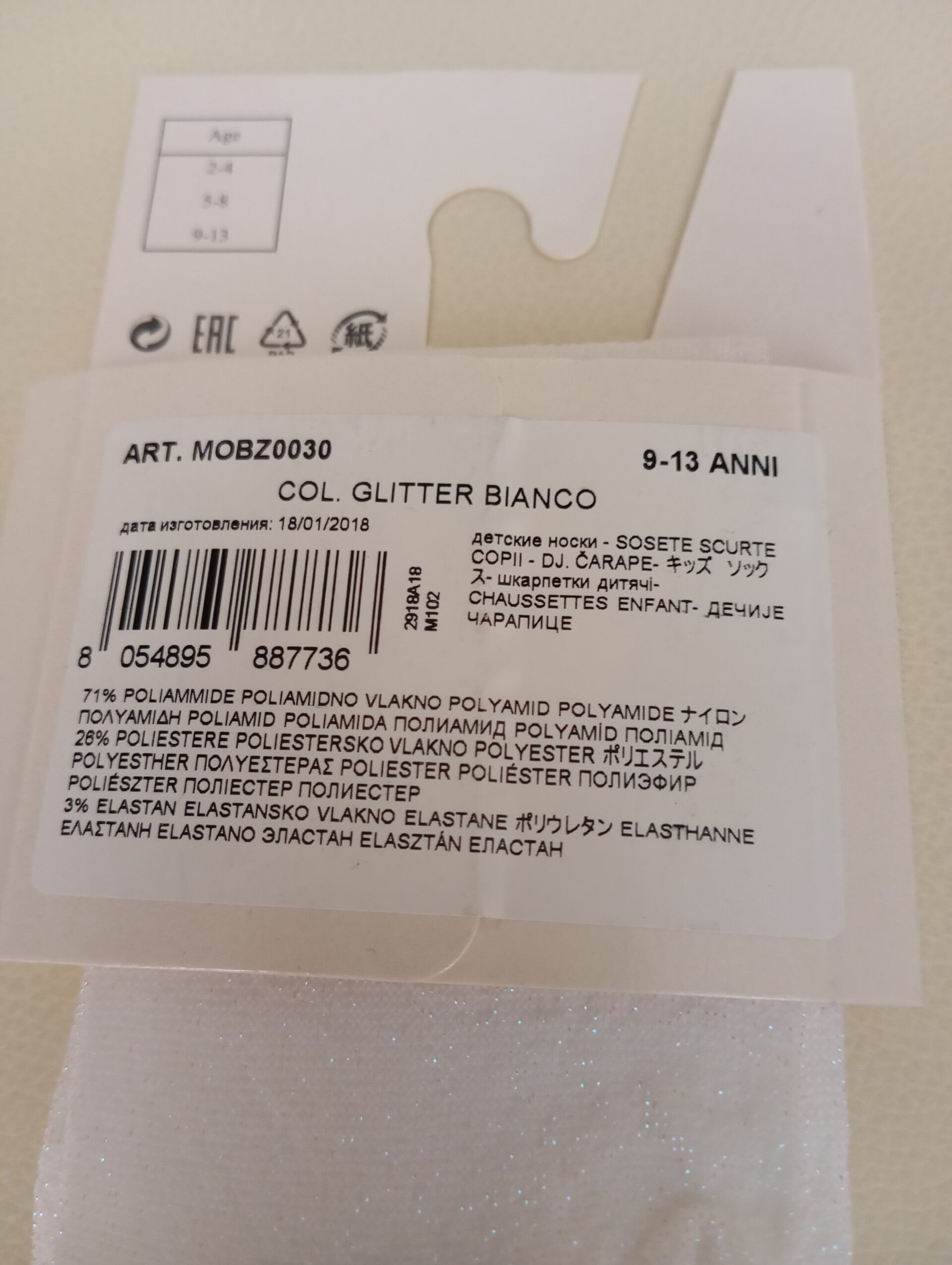 Calzino bianco con glitter agli 9/13 anni prodotto nuovo mai indossato.