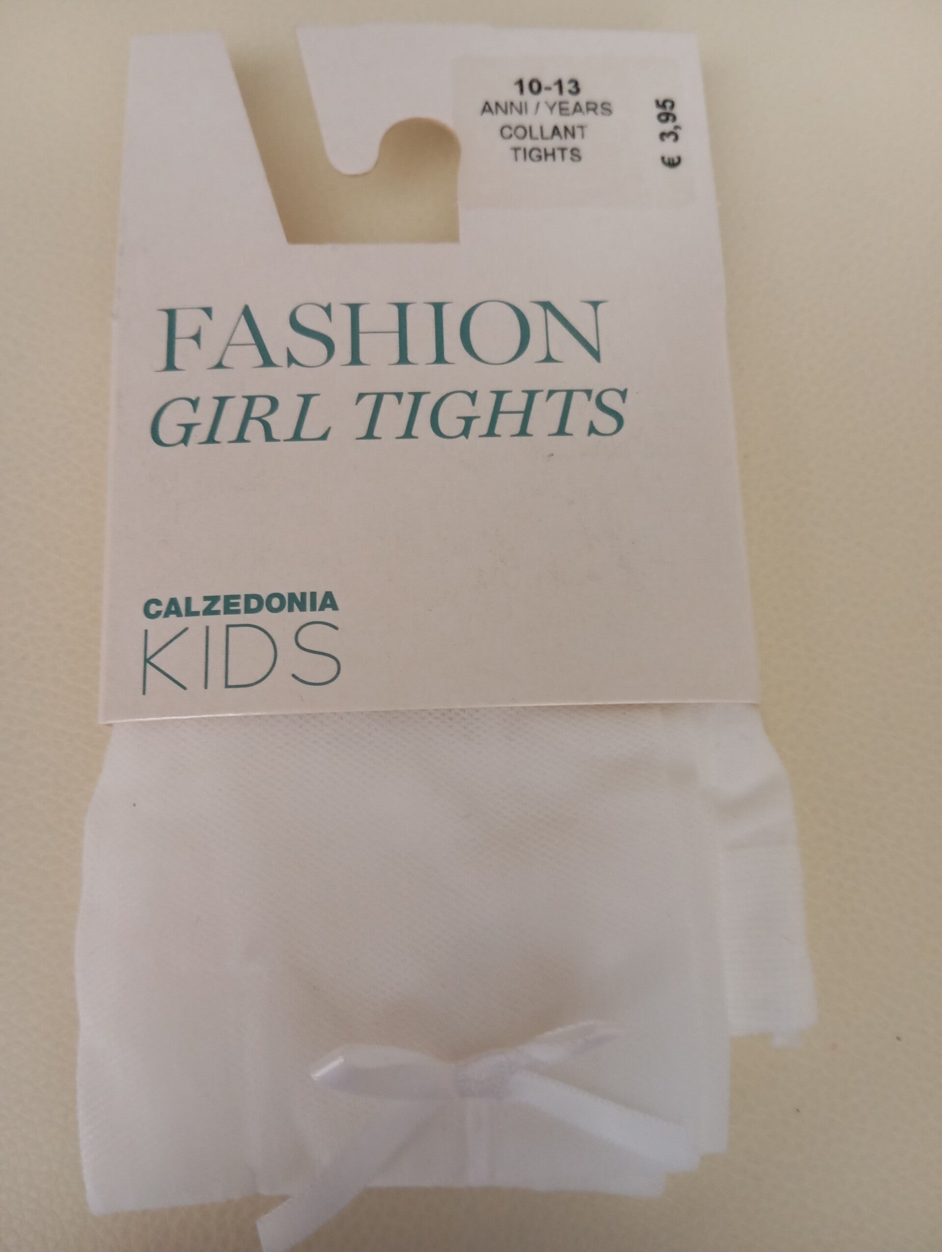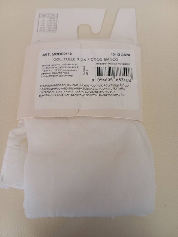 Collant bimba in tulle riga con fiocco bianco. Misura 10/13 anni. Prodotto nuovo