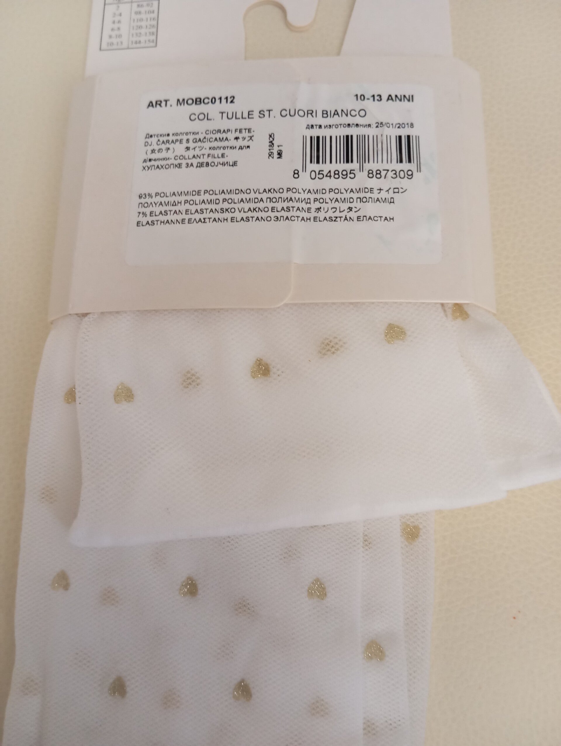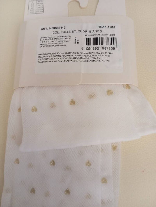 Collant bambina tulle con cuoricini color oro.